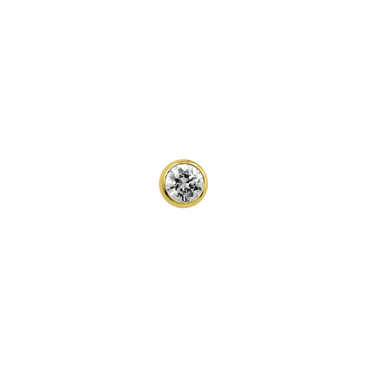 18 Krt. neusknopje met een briljant geslepen zirkonia in een zetkast uitgevoerd met een kogel sluiting.