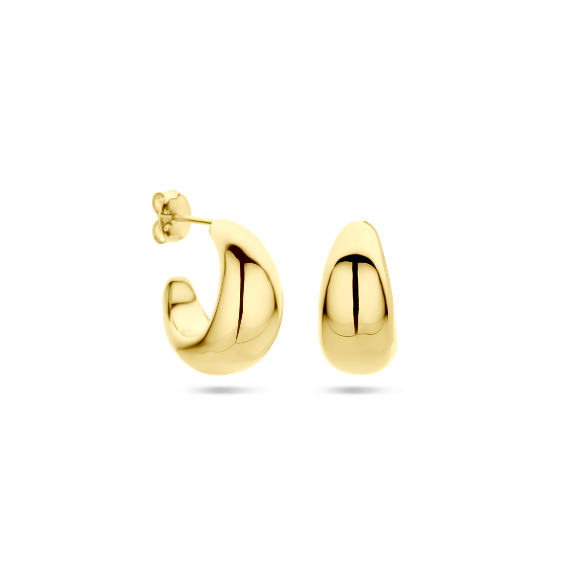 Geelgoud op 925 zilveren stekeroorringen. De oorknoppen hebben een hoogte van 17.5mm. Geen garantie op plating.