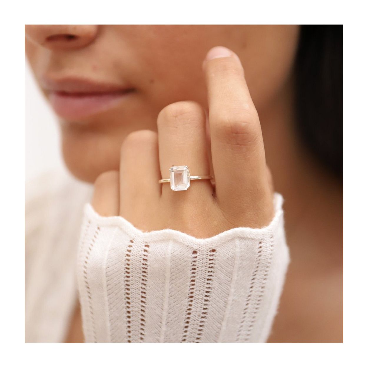 24Kae Ring met rechthoekige steen - 925 Sterling zilver gerhodineerd 12409S