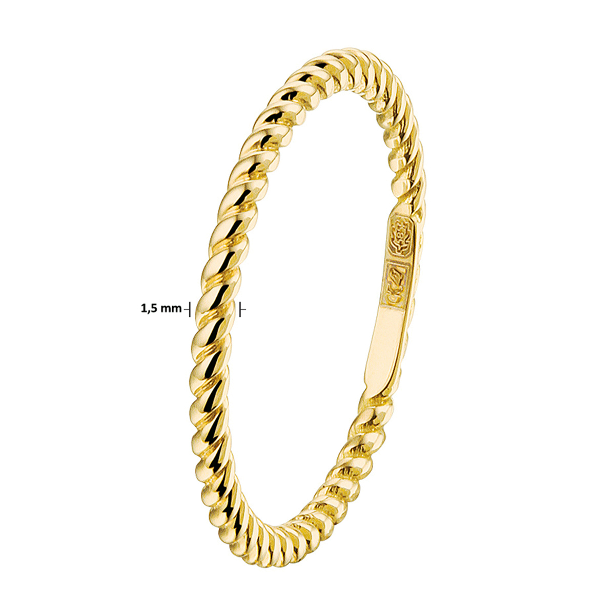Geelgouden aanschuifring waarbij de scheen verdraaid lijkt en geeft de ring een een elegante uitstraling. De ring heeft een breedte van 1.5mm en heeft een poli afwerking. Tip: Door het simplistische model is deze ring goed te combineren met andere sieraden uit onze collectie of uit je eigen sieraden stash!