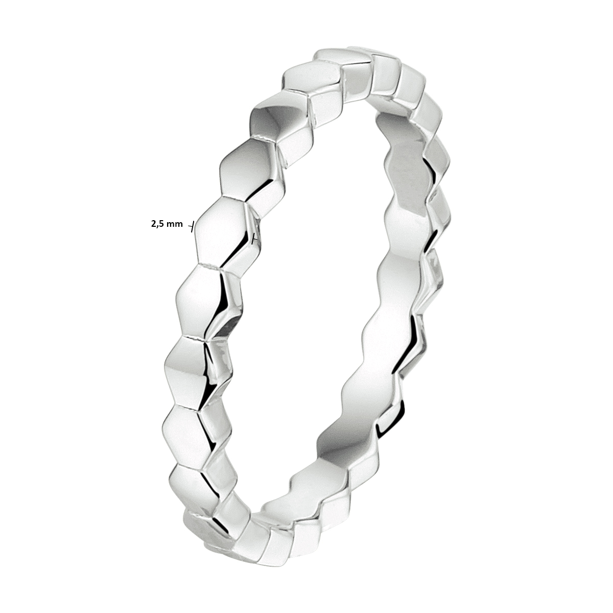 Gerhodineerd 925 zilveren ring uitgevoerd met zeshoeken. De ring heeft een breedte van 2.5mm.