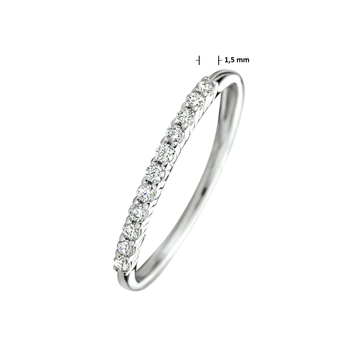 Gerhodineerd 925 zilveren aanschuifring uitgevoerd met een schitterende zirkonia rij. De ring heeft een breedte van 1.5mm.