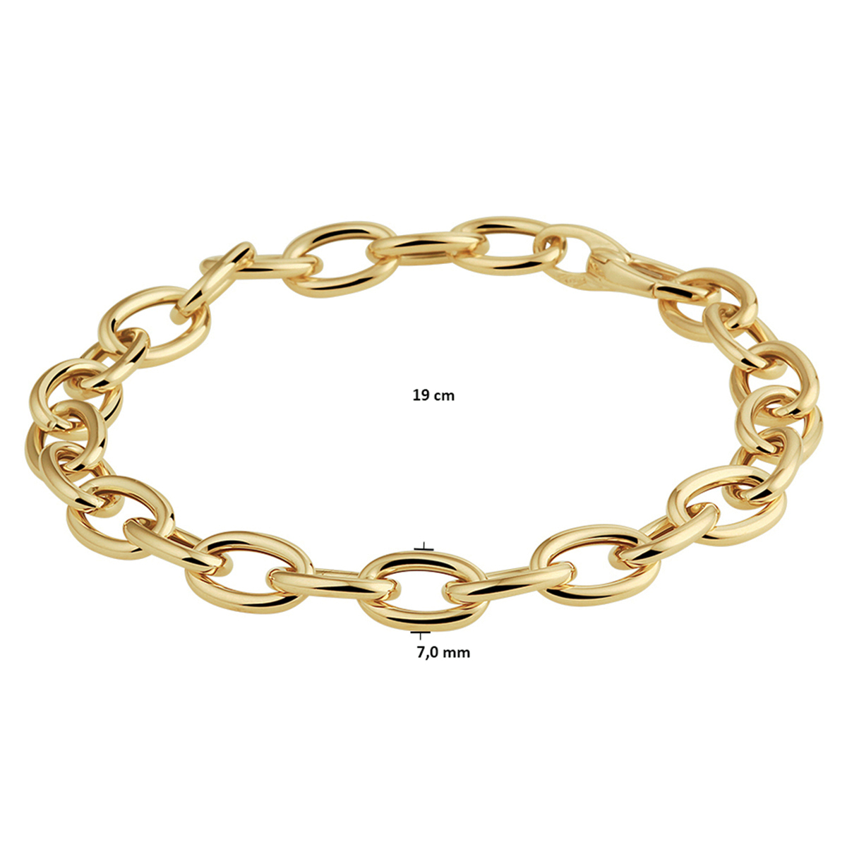 14k Geelgouden anker armband met een schakelbreedte van 7mm. De armband heeft een draaglengte van 19cm en is uitgevoerd met een stevige karabijn sluiting.