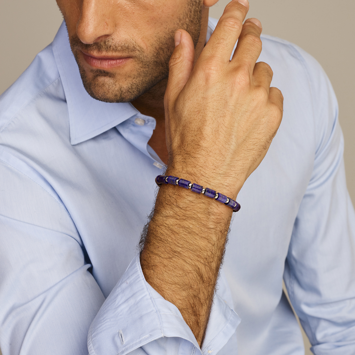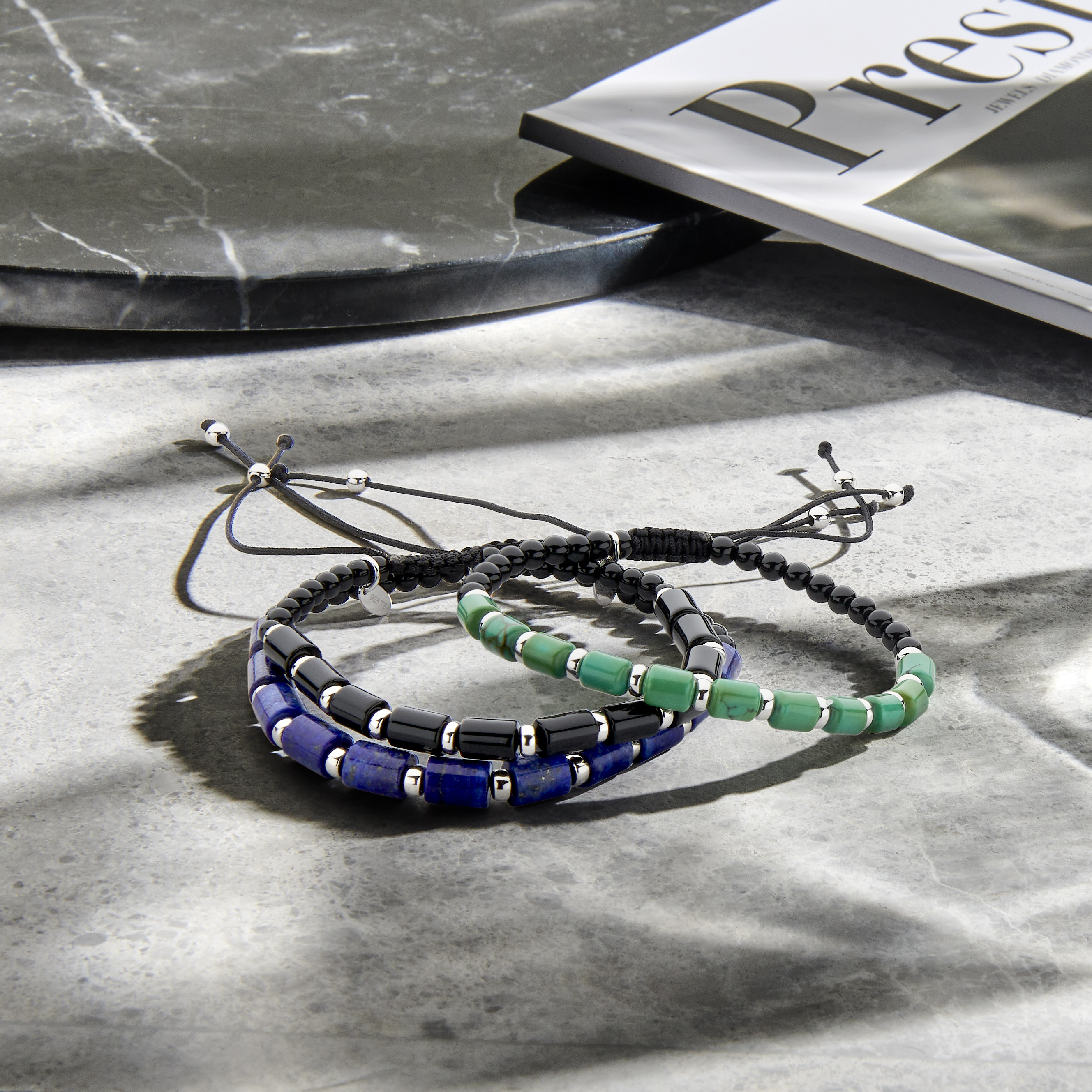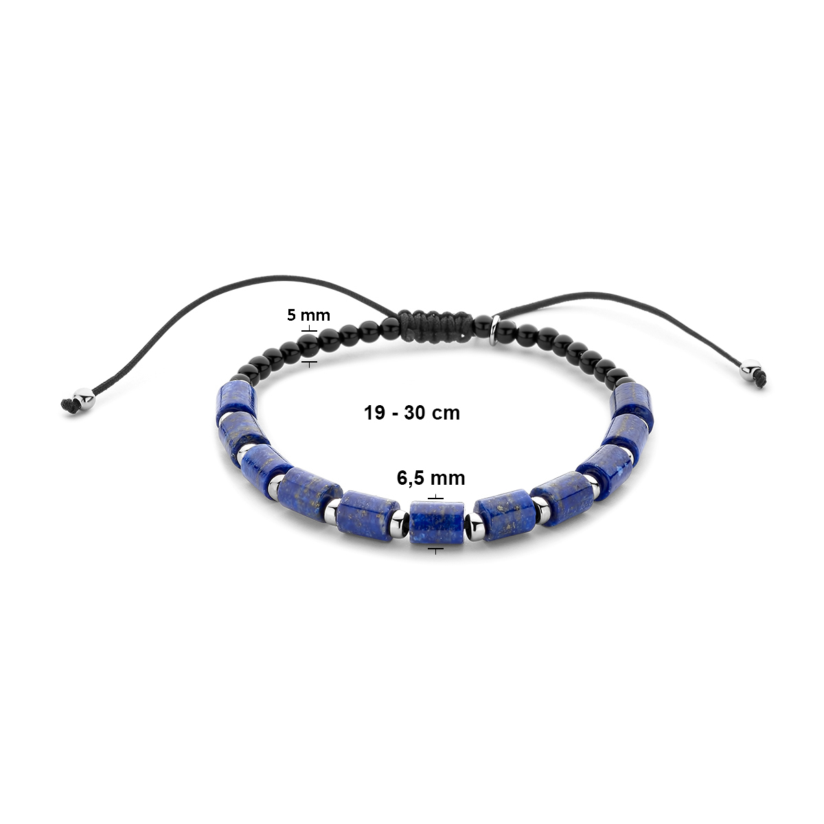 Gerhodineerd 925 zilveren armband uitgevoerd met lapis en onyx stenen. De armband heeft een verstelbare draaglengte van 16 tot 26cm.