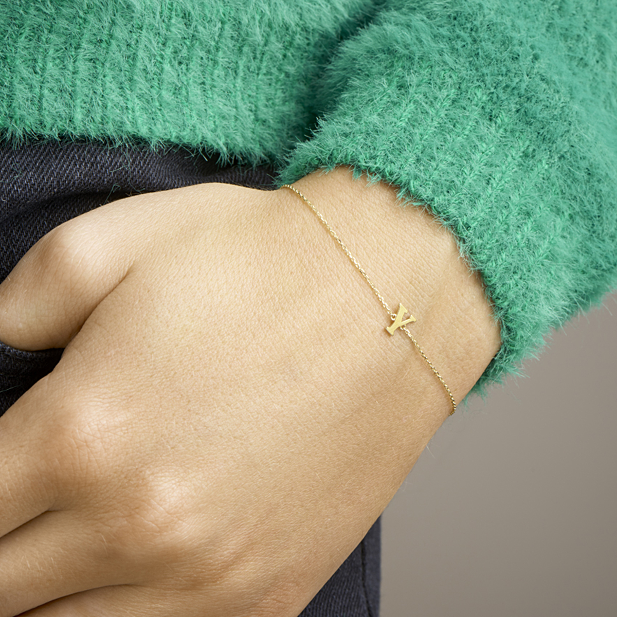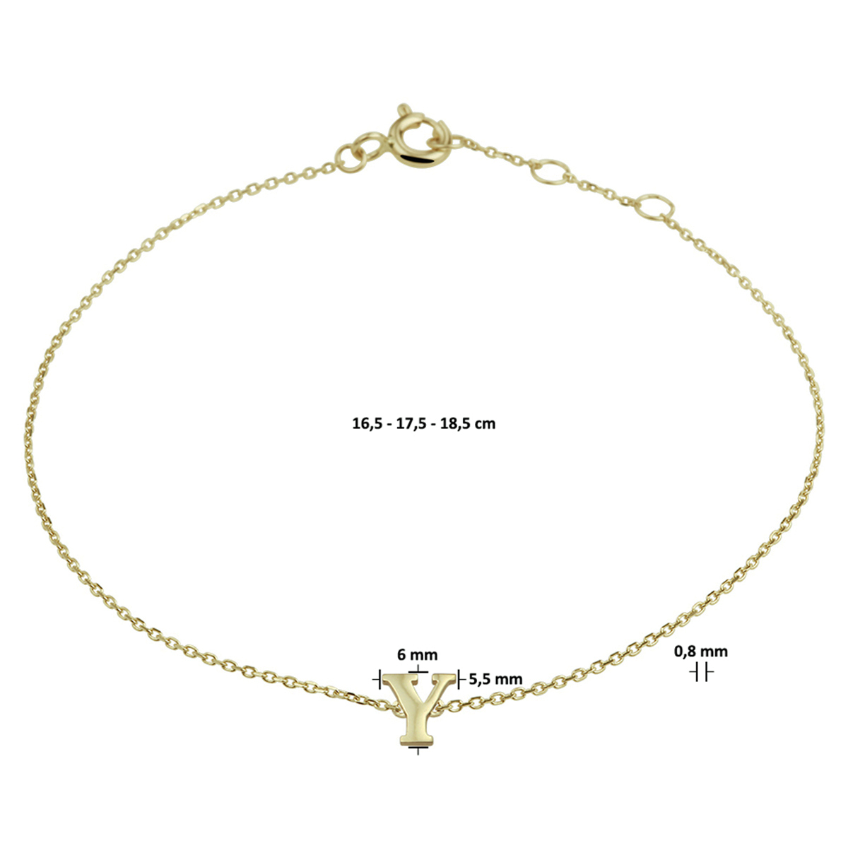 14k Geelgouden anker armband uitgevoerd met de letter Y. De armband heeft draaglengtes van 16.5, 17.5 en 18.5cm. De letter heeft een afmeting van 6x5.5mm.