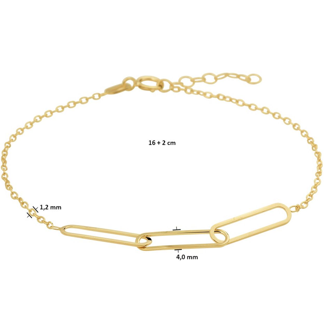 14k Geelgouden armband met een breedte van 4mm. De armband heeft een draaglengte van 16cm met een extensie van 2cm en is uitgevoerd met een stevige karabijn sluiting.
