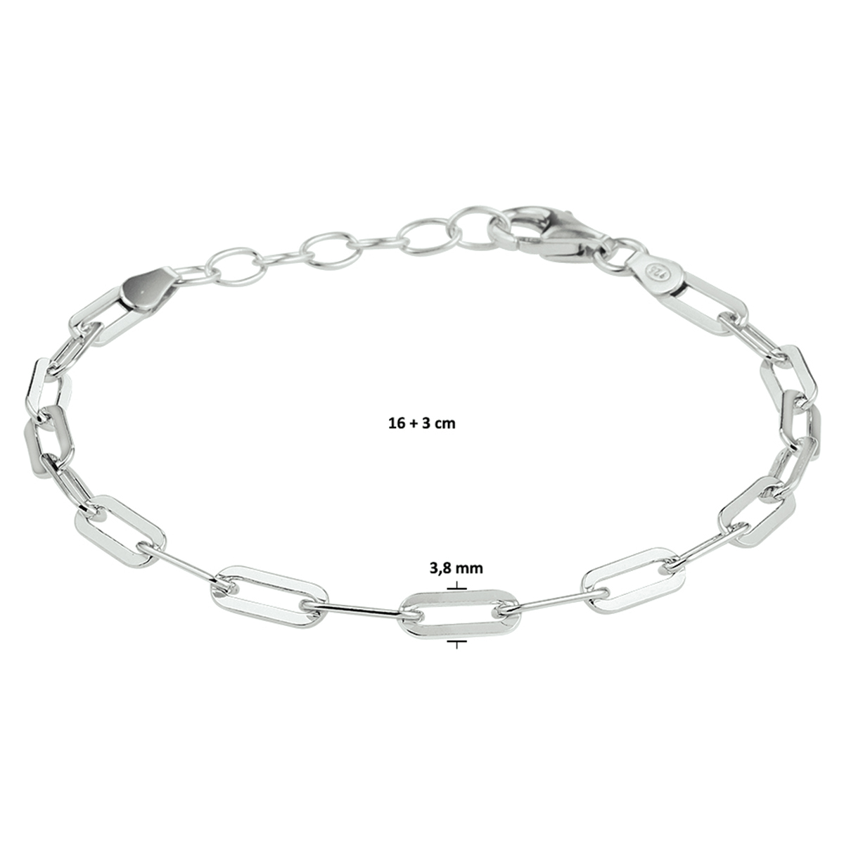 Gerhodineerd 925 zilveren anker armband uitgevoerd met stevige karabijn sluiting. De armband heeft draaglengtes van 16 en 19cm en een schakelbreedte van 3.8mm.