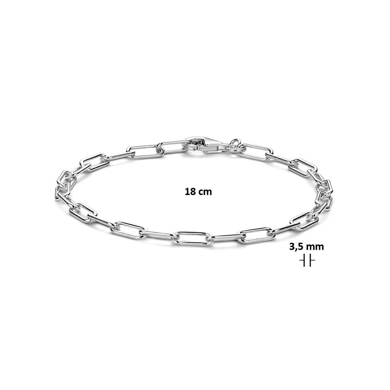Gerhodineerd 925 zilveren paperclip armband met een schakelbreedte van 3.5mm. De armband heeft een draaglengte van 18cm en een stevige karabijn sluiting.