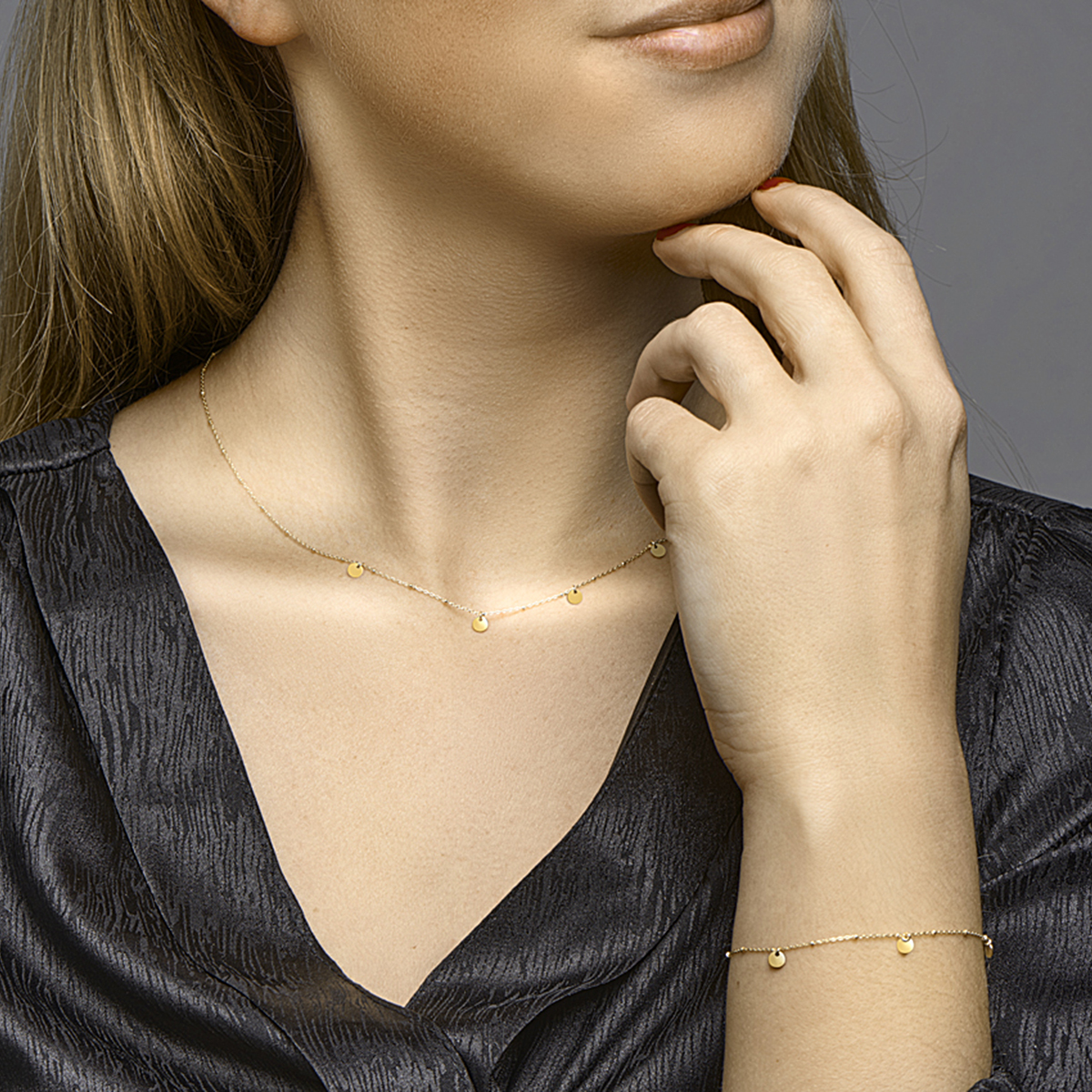14k Geelgouden armband uitgevoerd met rondjes. De armband heeft een draaglengte van 16cm met een extensie van 2cm. De rondjes hebben een diameter van 4mm.
