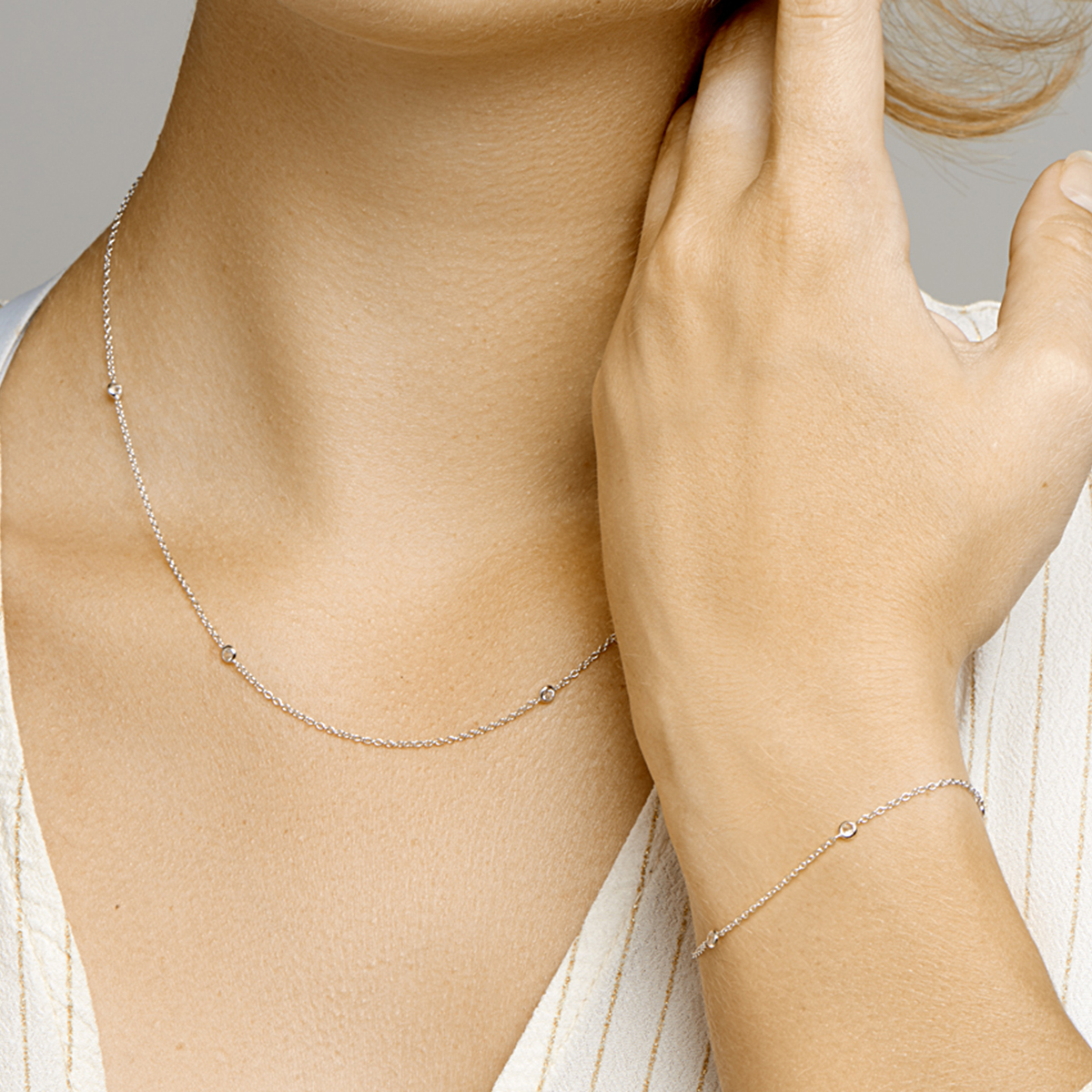 Beschrijving: Witgouden armband met zirkonia. Met draaglengtes van 17 en 19cm.
