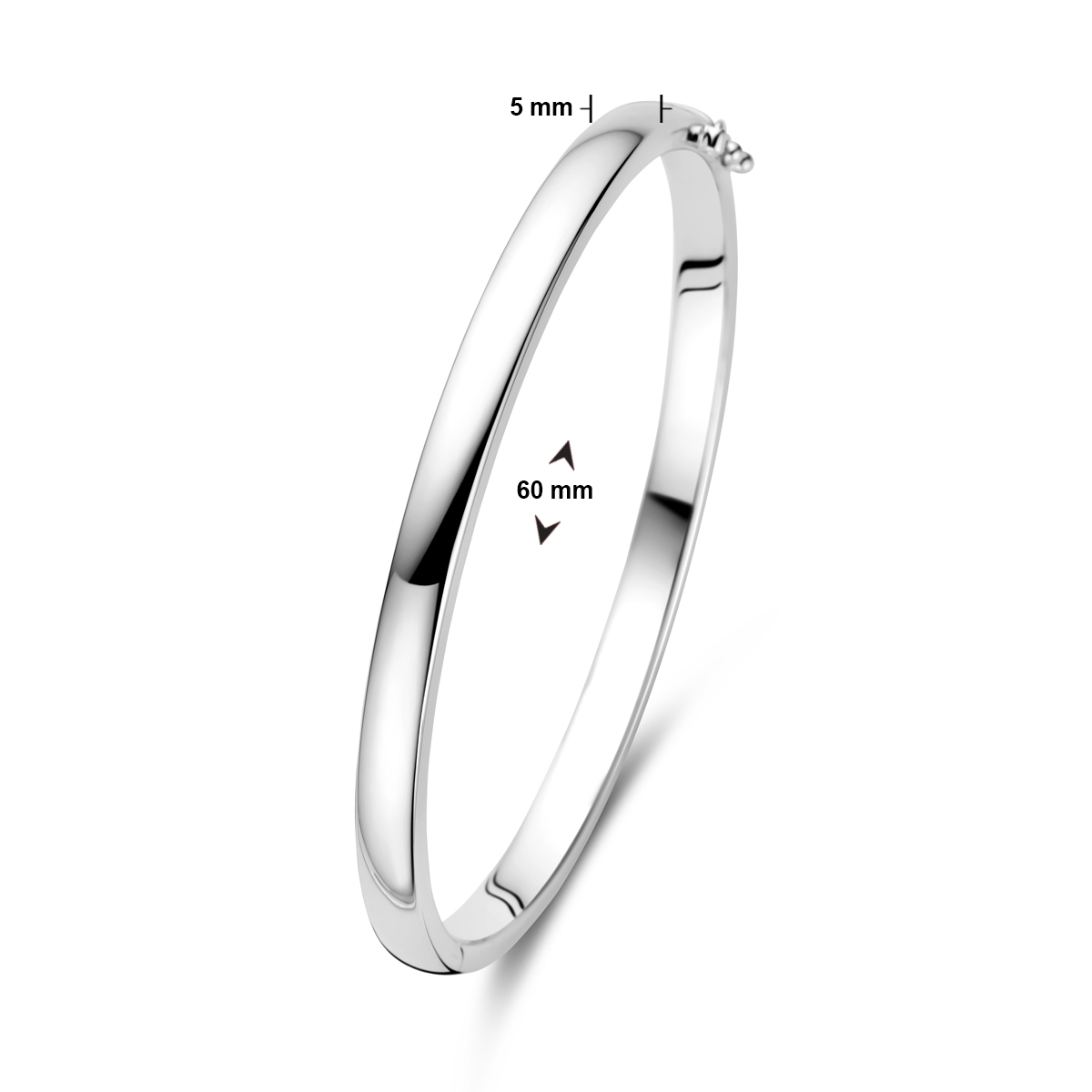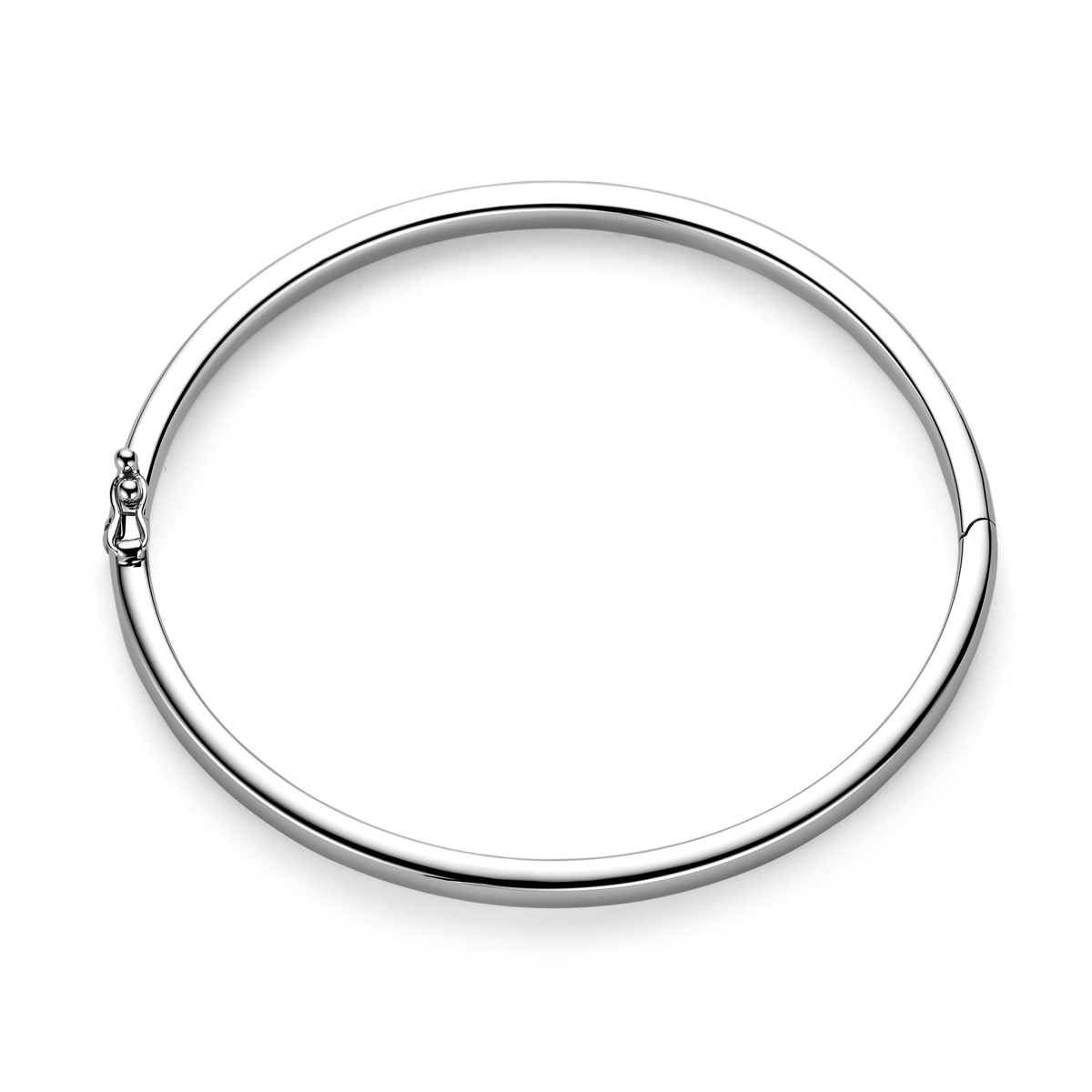 Gerhodineerd zilveren Bangle armband met een vlakke band en scharnier-sluiting.