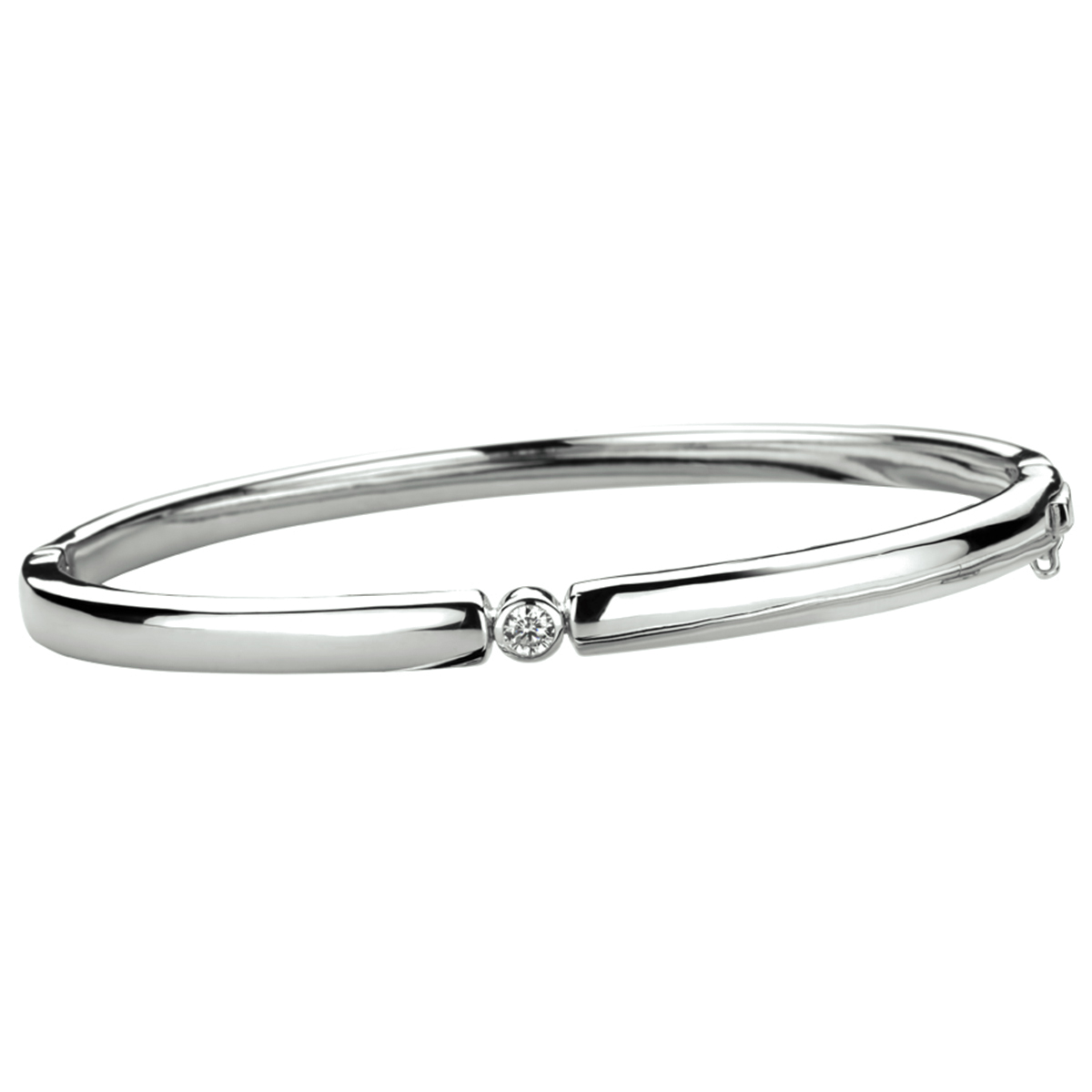 Gerhodineerd zilveren bangle uitgevoerd met een zetkast met een schitterende zirkonia.