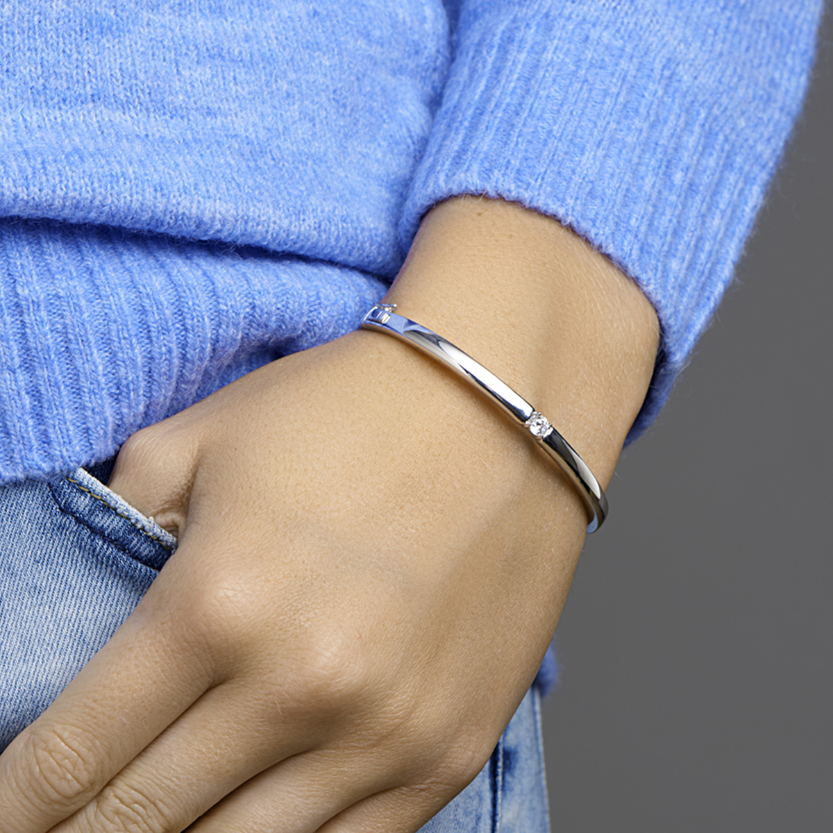 Beschrijving: Gerhodineerd zilveren bangle uitgevoerd met een chaton met een schitterende zirkonia. Tip: Combineer deze bangle met bijpassende sieraden uit onze collectie of vanuit je eigen stash en creeer zo elke keer weer een nieuwe look.
