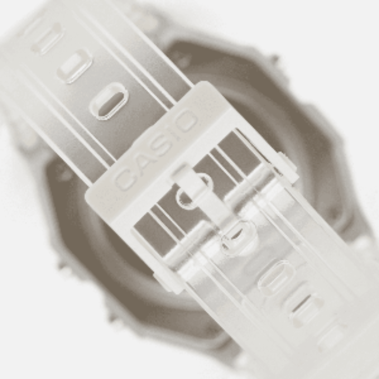 Casio horloge met een digitale aanduiding, een doorzichtige band en een verchroomde kast