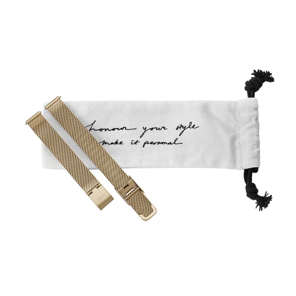 Deze horlogeband van Cluse is gemaakt van edelstaal en de kleur is goud.