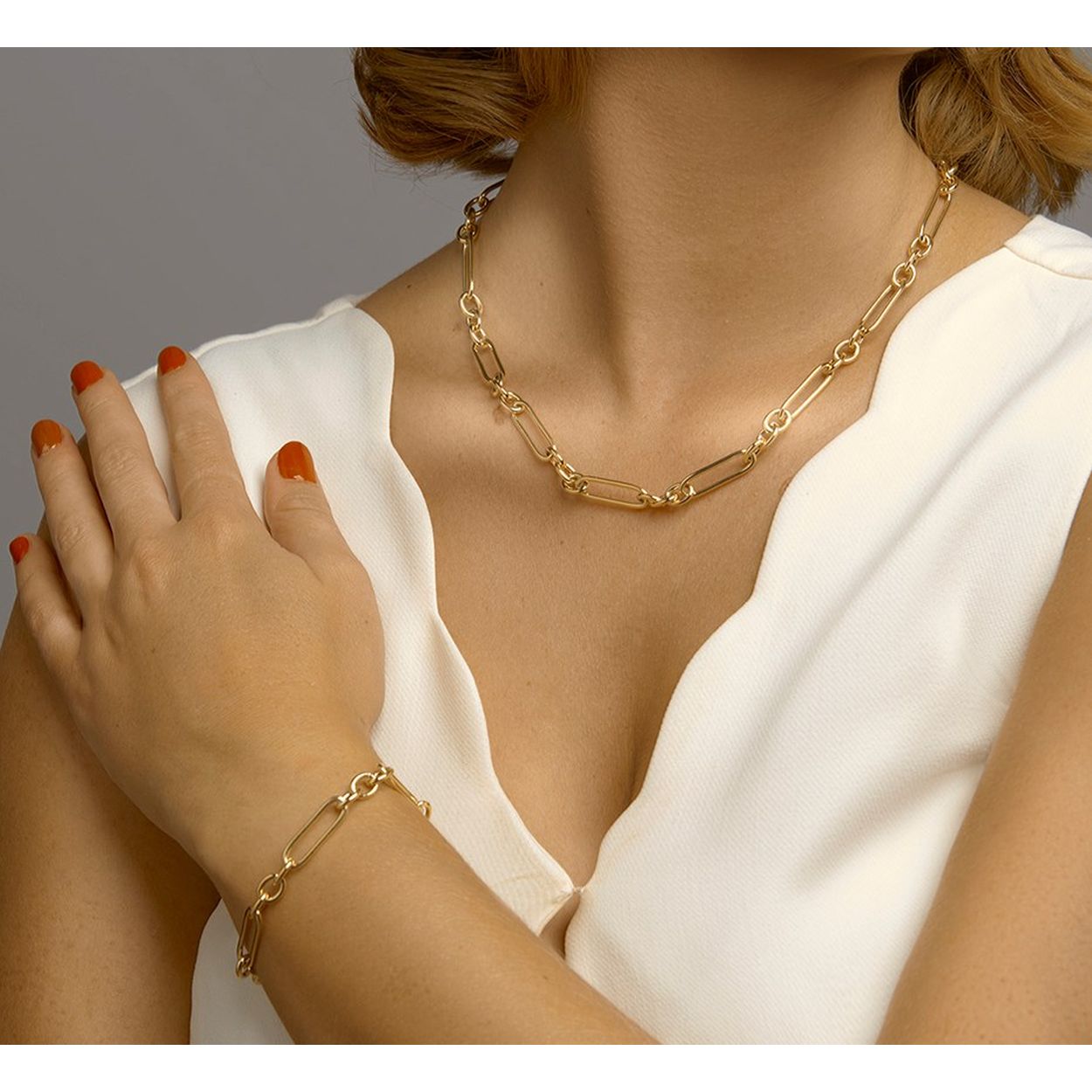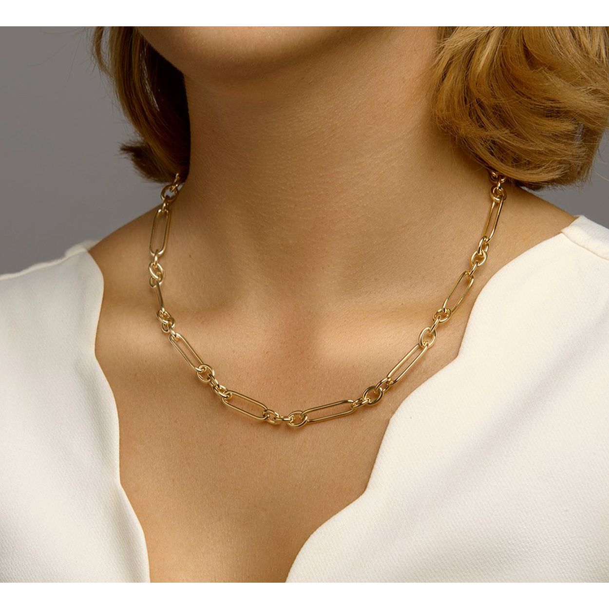 Geelgoud op 925 zilveren collier met een schakelbreedte van 7mm. Het collier heeft een draaglengte van 50cm en een stevige karabijn sluiting.