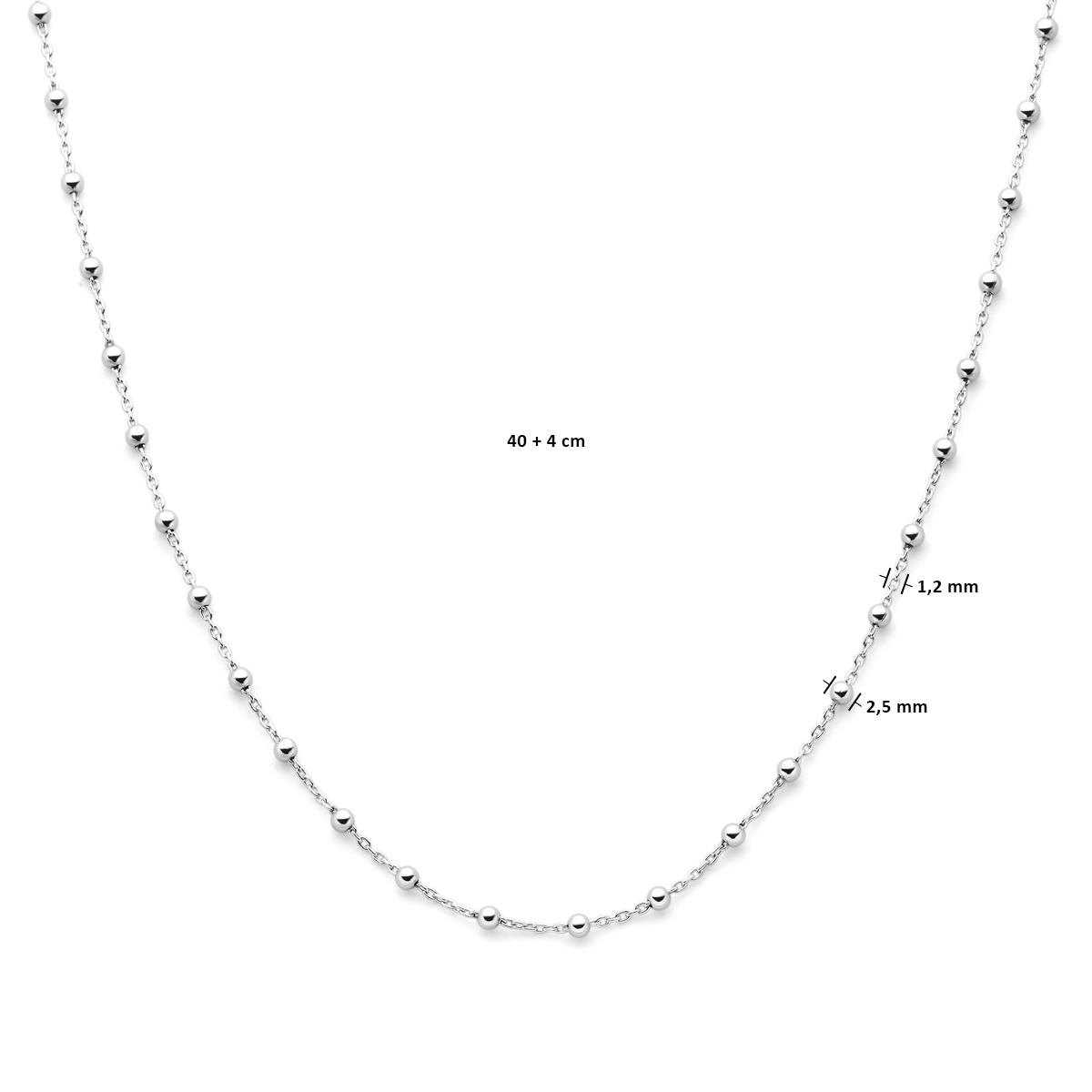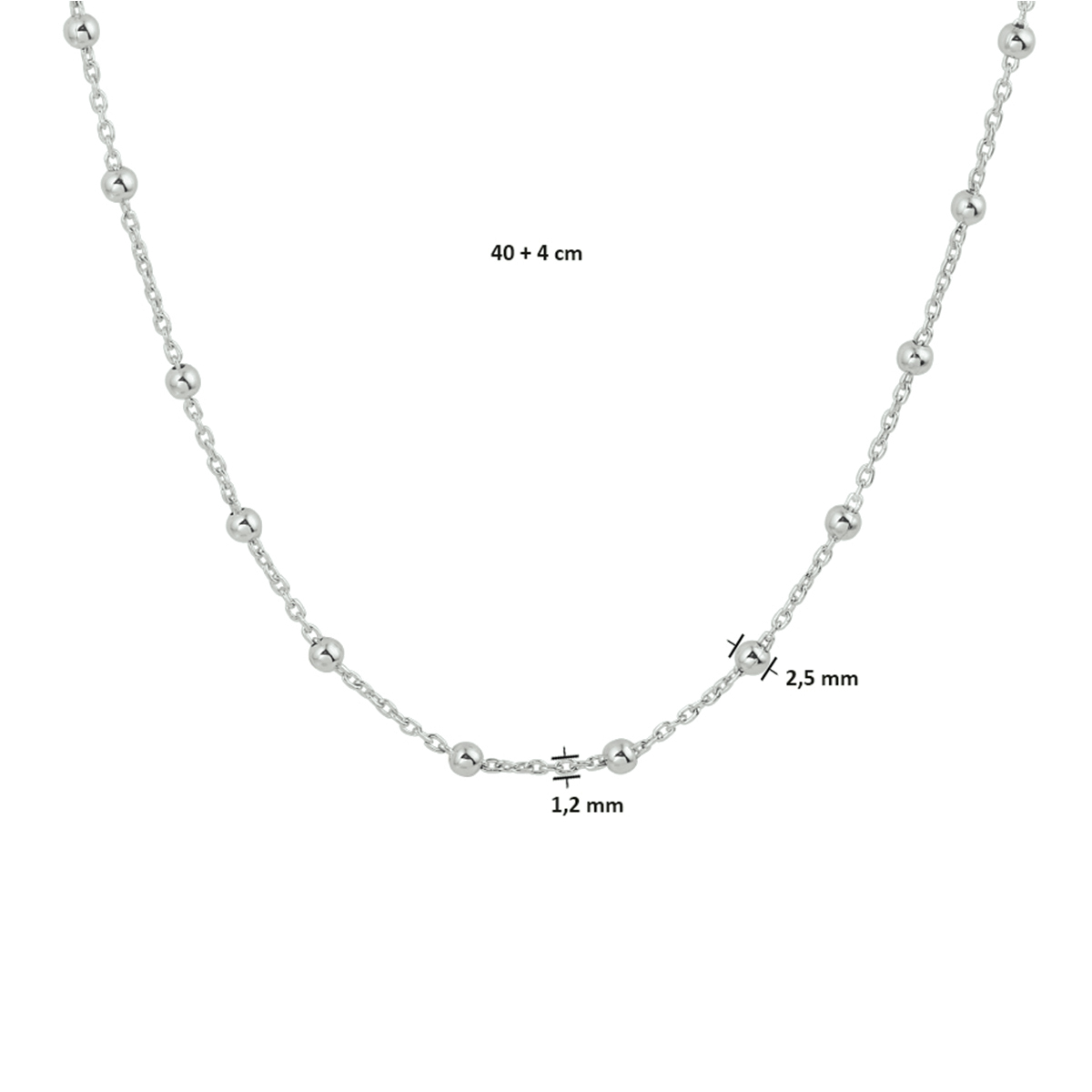 Gerhodineerd 925 zilveren collier uitgevoerd met bolletjes met een breedte van 2.5mm. Het collier heeft een draaglengte van 40cm met een extensie van 4cm.