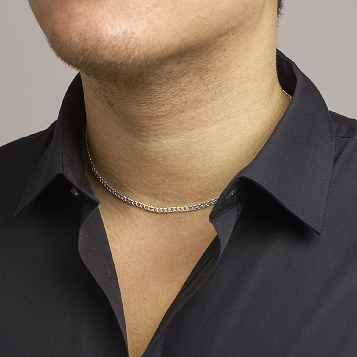 De moderne man weet dat sieraden allang niet meer alleen voor vrouwen zijn! Draag jouw set casual met een spijkerbroek of met een knipoog bij een wat meer zakelijke look. Details: Zilveren collier met geslepen gourmet schakel.