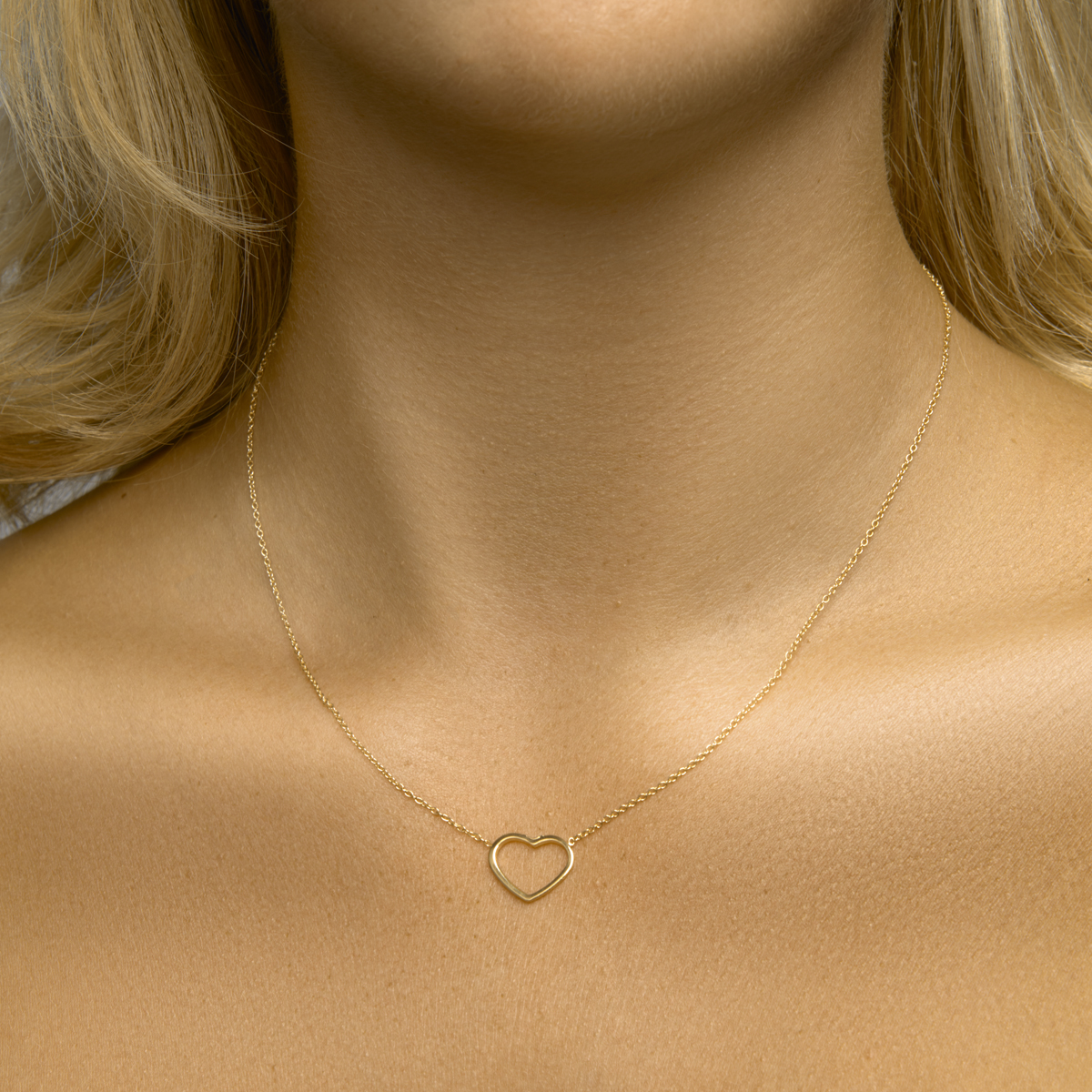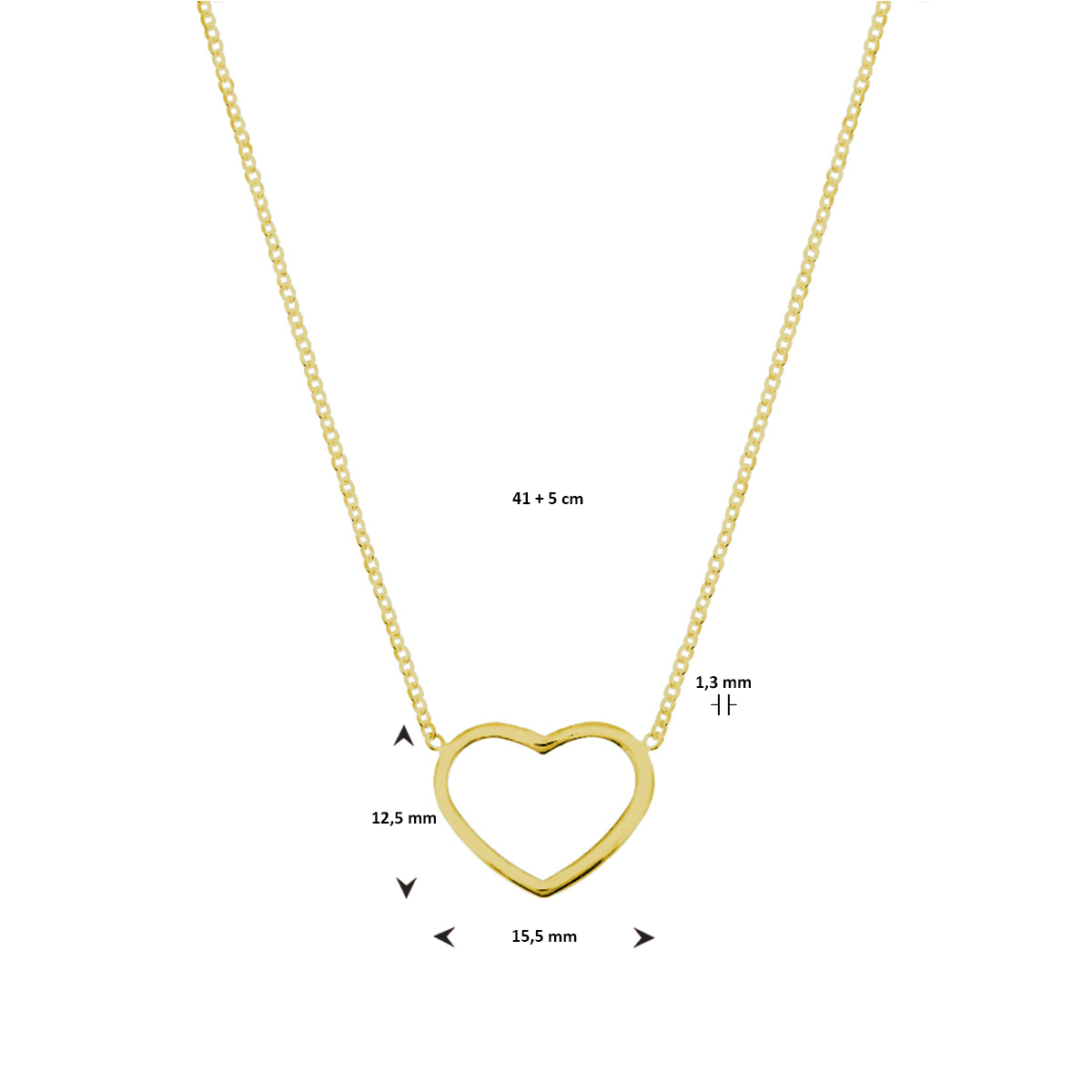 Geelgoud op 925 zilveren collier uitgevoerd met een hartje. Het collier heeft een draaglengte van 41cm met een extensie van 5cm. Het hartje heeft een afmeting van 12.5x15.5mm.