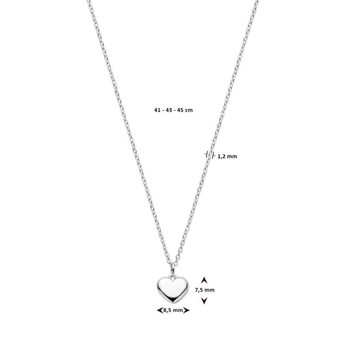 Gerhodineerd op 925 zilveren collier uitgevoerd met een hartje. Het collier heeft draaglengtes van 41-43-45cm.