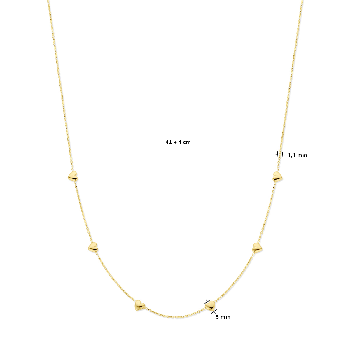 21.03425 | Collier hartjes | Zilver verguld | 1,1 mm & 41 + 4 cm | 3 micron