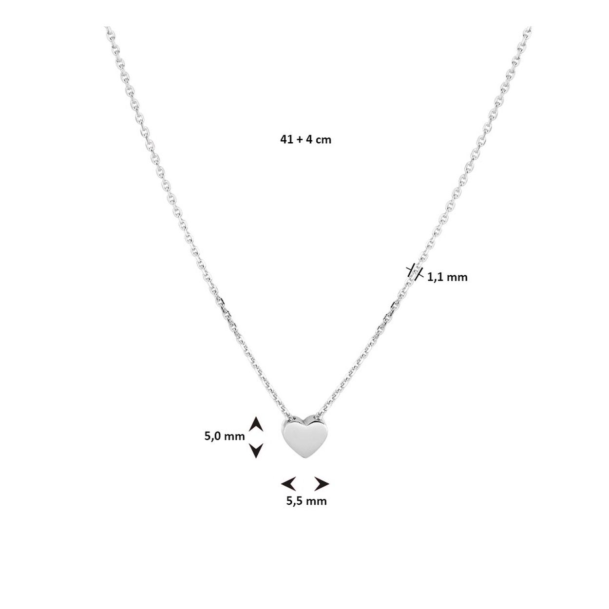 Gerhodineerd 925 zilveren collier uitgevoerd met een hartje. Het collier heeft een draaglengte van 41cm met een extensie van 4cm. Het hartje heeft een afmeting van 5x5.5mm.