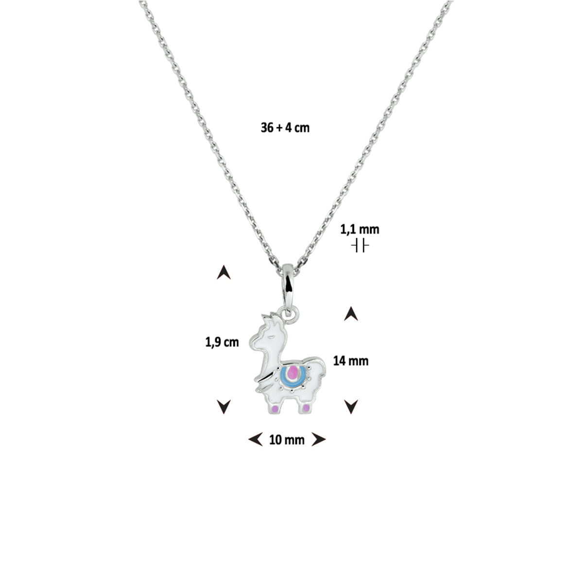 De collier is gemaakt van gerhodineerd zilver en is rokleurig. Het is een sieraad voor kinderen.