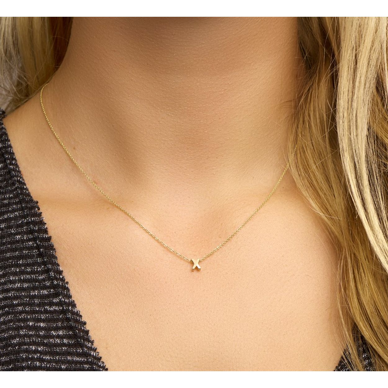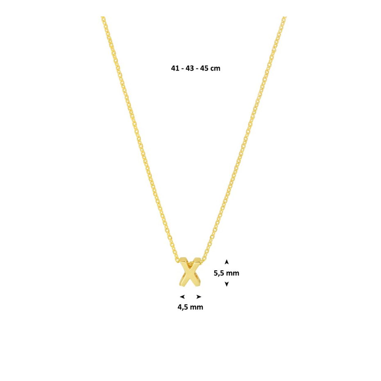 14k Geelgouden anker collier uitgevoerd met de letter X. Het collier heeft draaglengtes van 41, 43 en 45cm. De letter heeft een afmeting van 5.5x4.5mm.