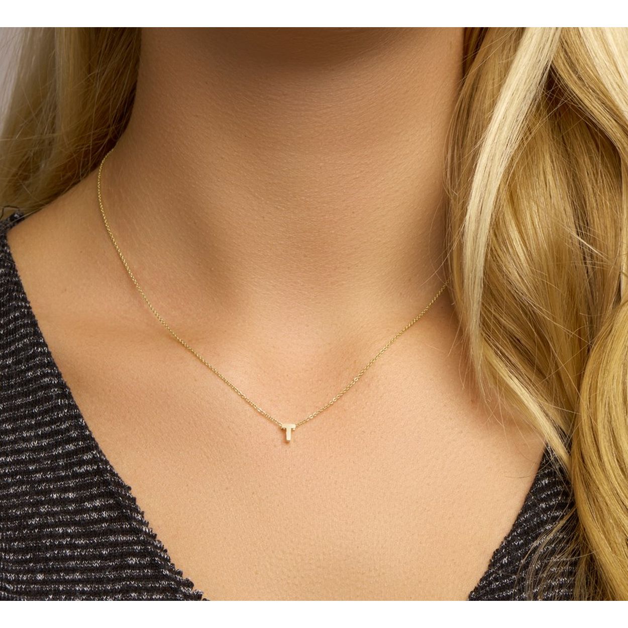 14k Geelgouden anker collier uitgevoerd met de letter T. Het collier heeft draaglengtes van 41, 43 en 45cm. De letter heeft een afmeting van 5.5x4.5mm.