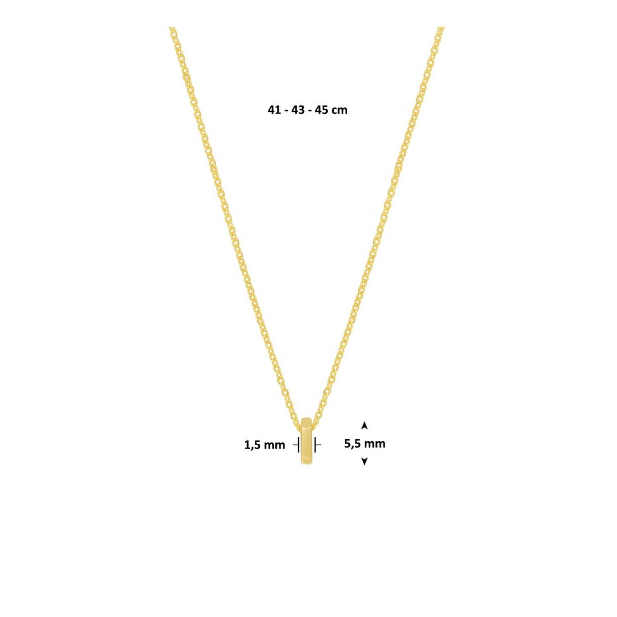 14k Geelgouden anker collier uitgevoerd met de letter I. Het collier heeft draaglengtes van 41, 43 en 45cm. De letter heeft een afmeting van 5.5x1.5mm.