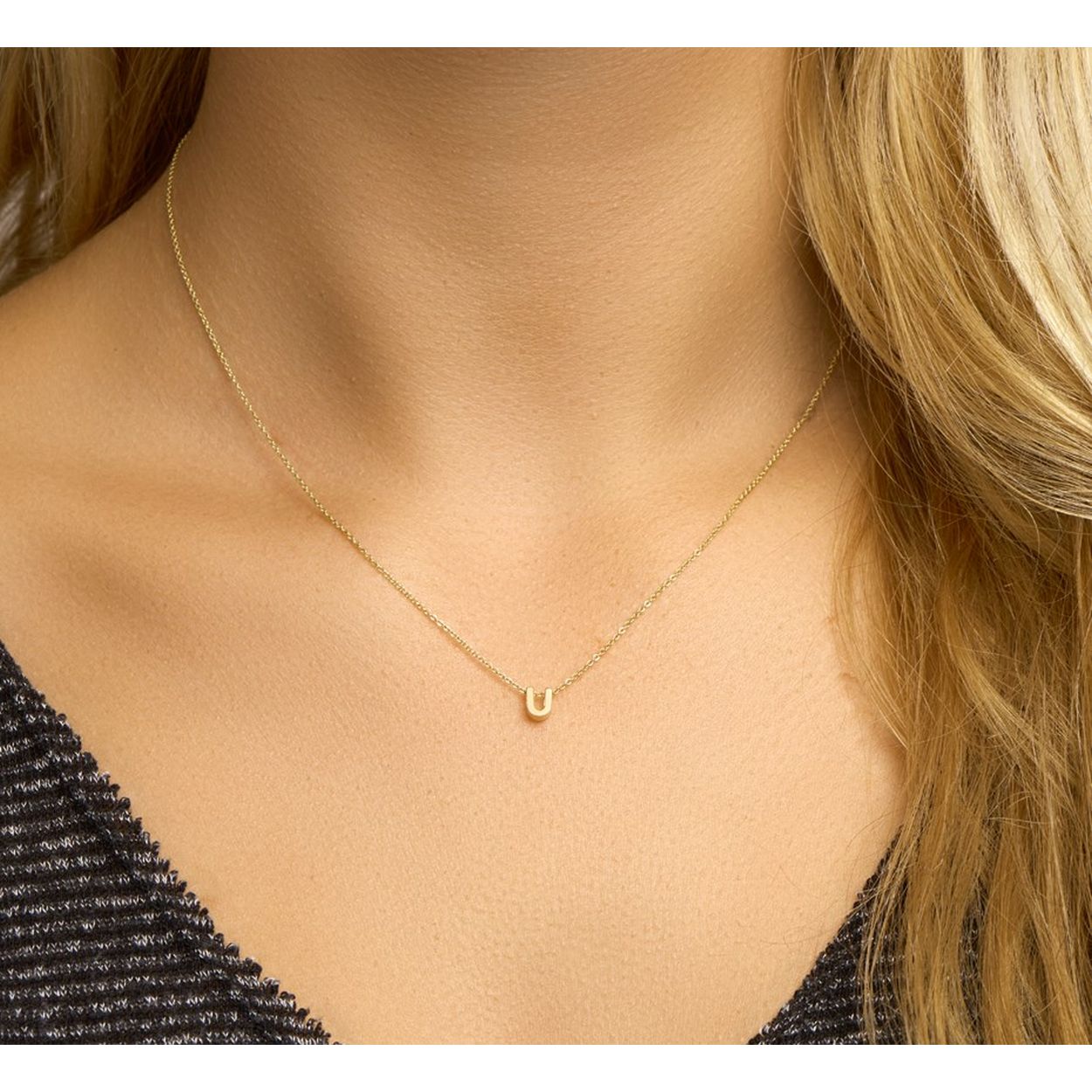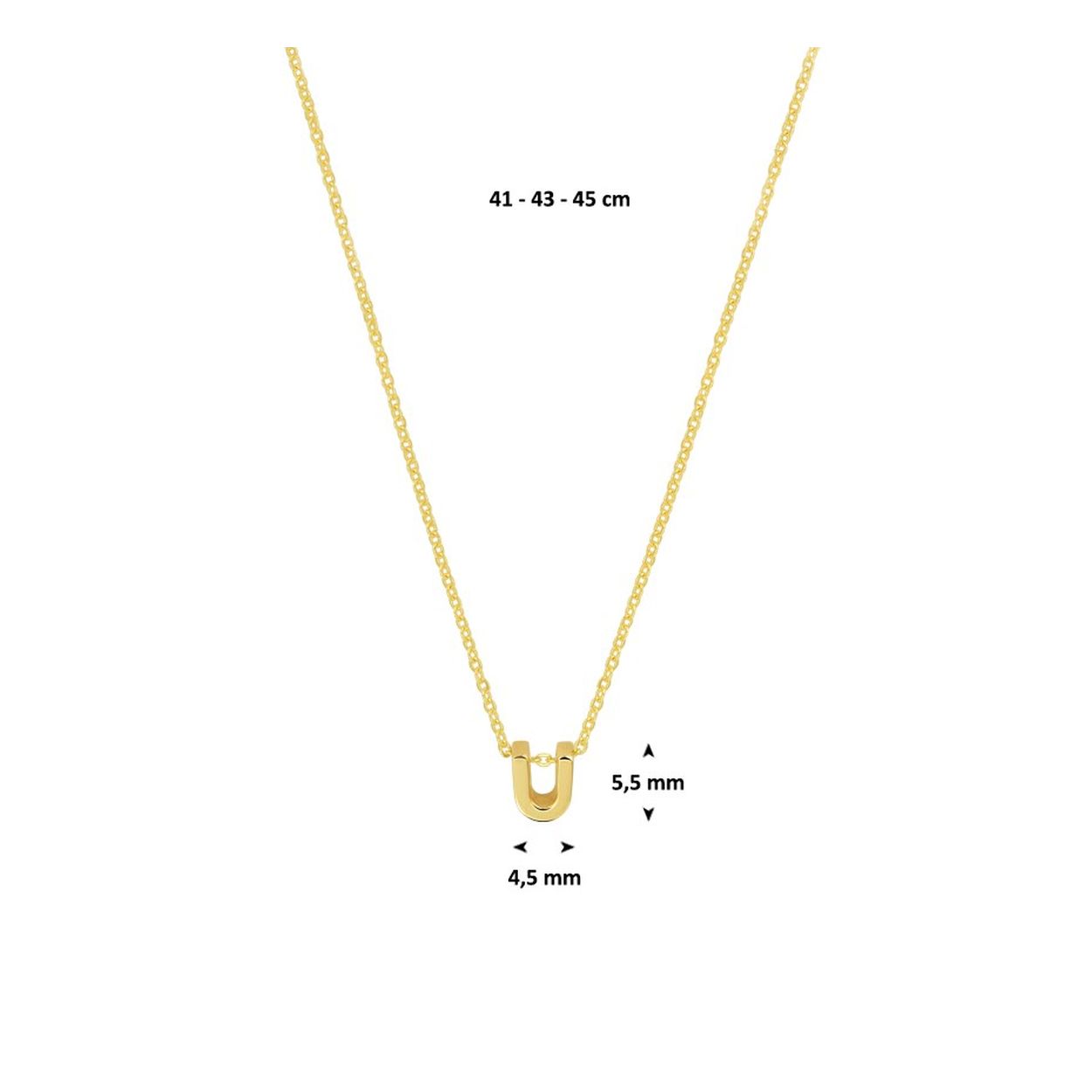 14k Geelgouden anker collier uitgevoerd met de letter U. Het collier heeft draaglengtes van 41, 43 en 45cm. De letter heeft een afmeting van 5.5x4.5mm.