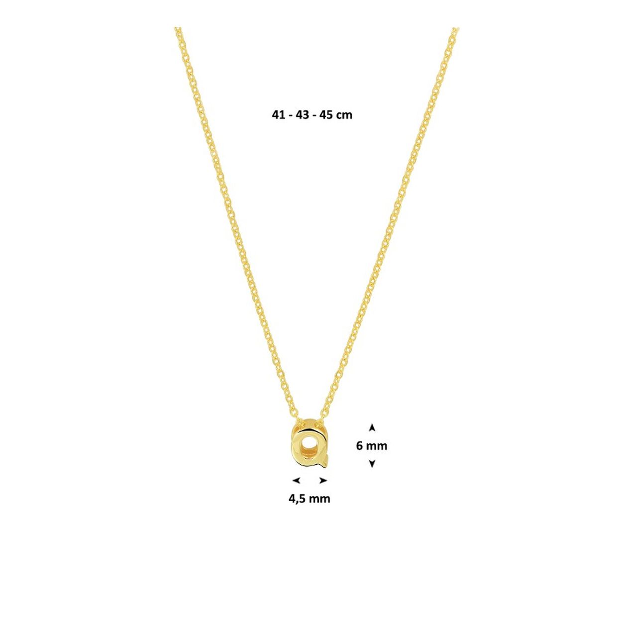 14k Geelgouden anker collier uitgevoerd met de letter Q. Het collier heeft draaglengtes van 41, 43 en 45cm. De letter heeft een afmeting van 6x4.5mm.
