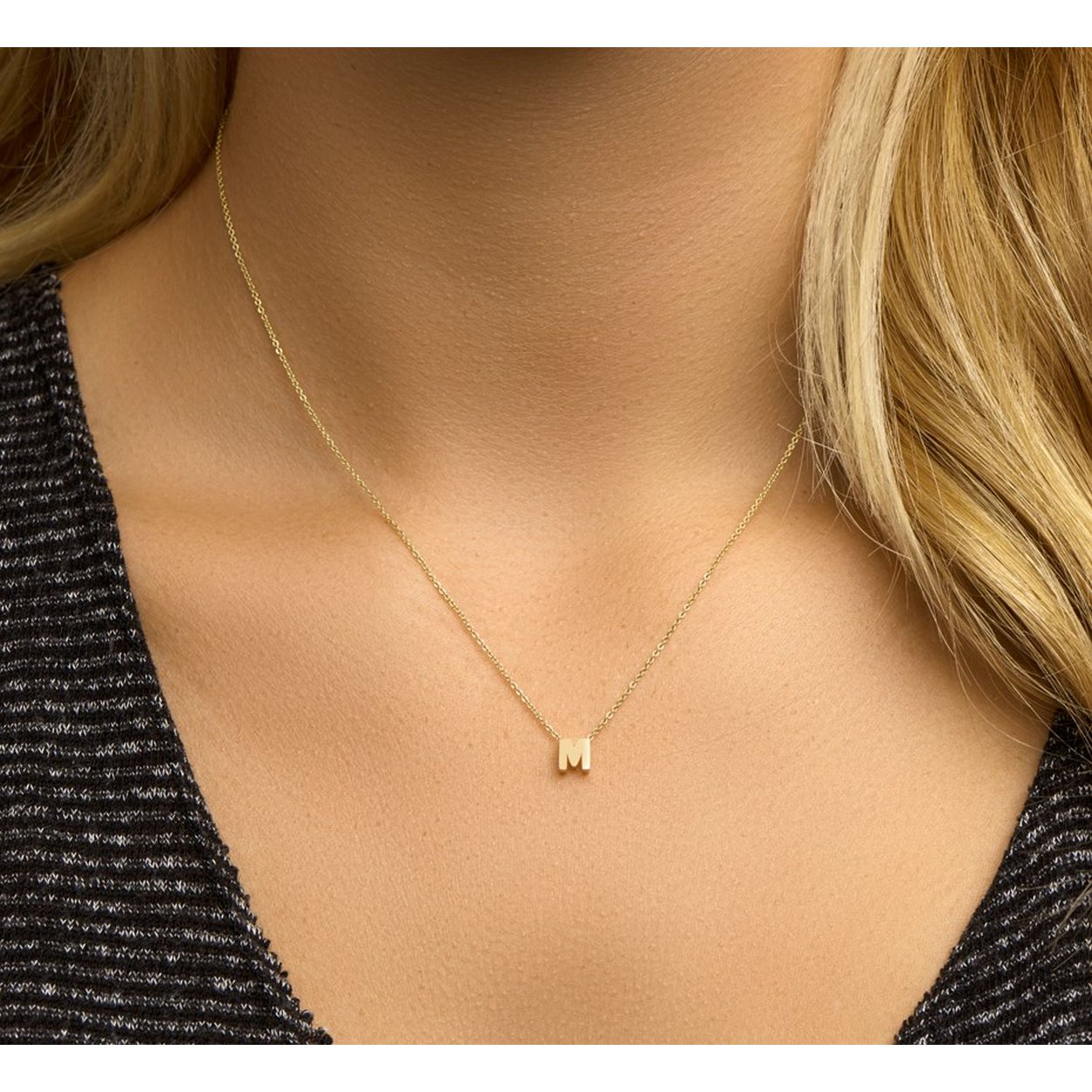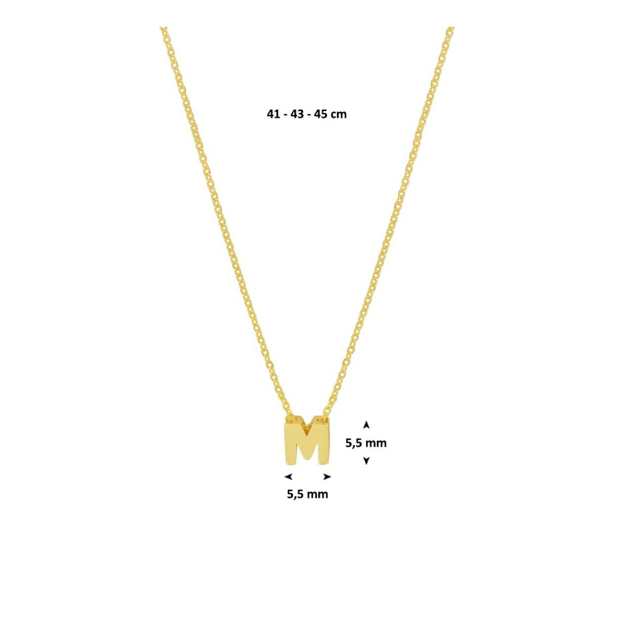 14k Geelgouden anker collier uitgevoerd met de letter M. Het collier heeft draaglengtes van 41, 43 en 45cm. De letter heeft een afmeting van 5.5x5.5mm.