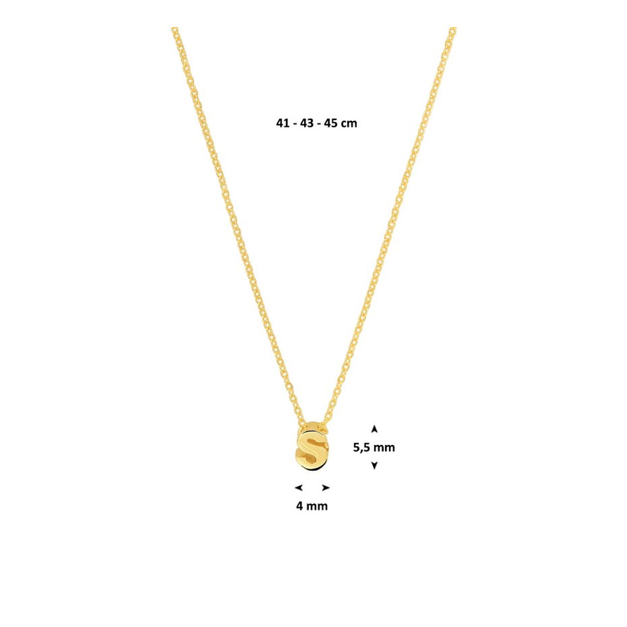 14k Geelgouden anker collier uitgevoerd met de letter S. Het collier heeft draaglengtes van 41, 43 en 45cm. De letter heeft een afmeting van 5.5x4mm.