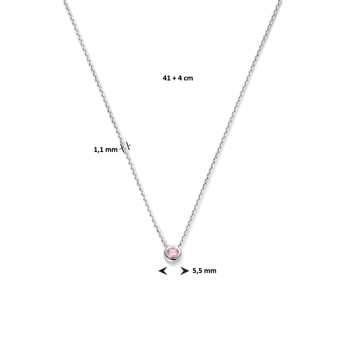 Gerhodineerd 925 zilveren collier uitgevoerd met schitterende zirkonia en een karabijn sluiting. Het collier heeft een draaglengte van 41cm met 4cm extensie. De schakelbreedte is 1.1mm.
