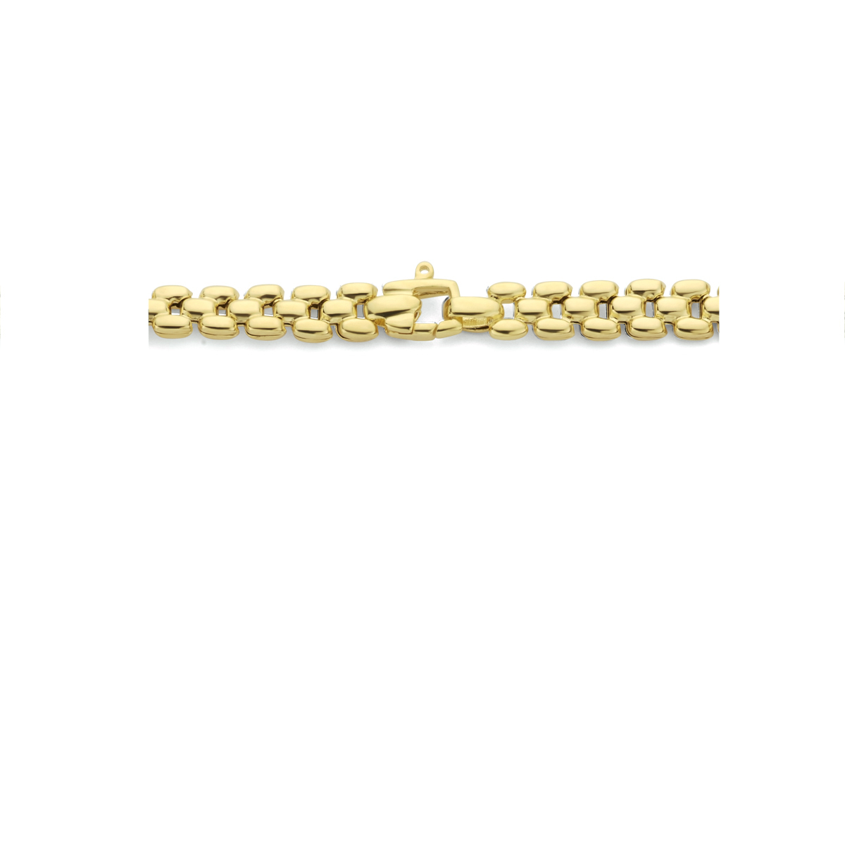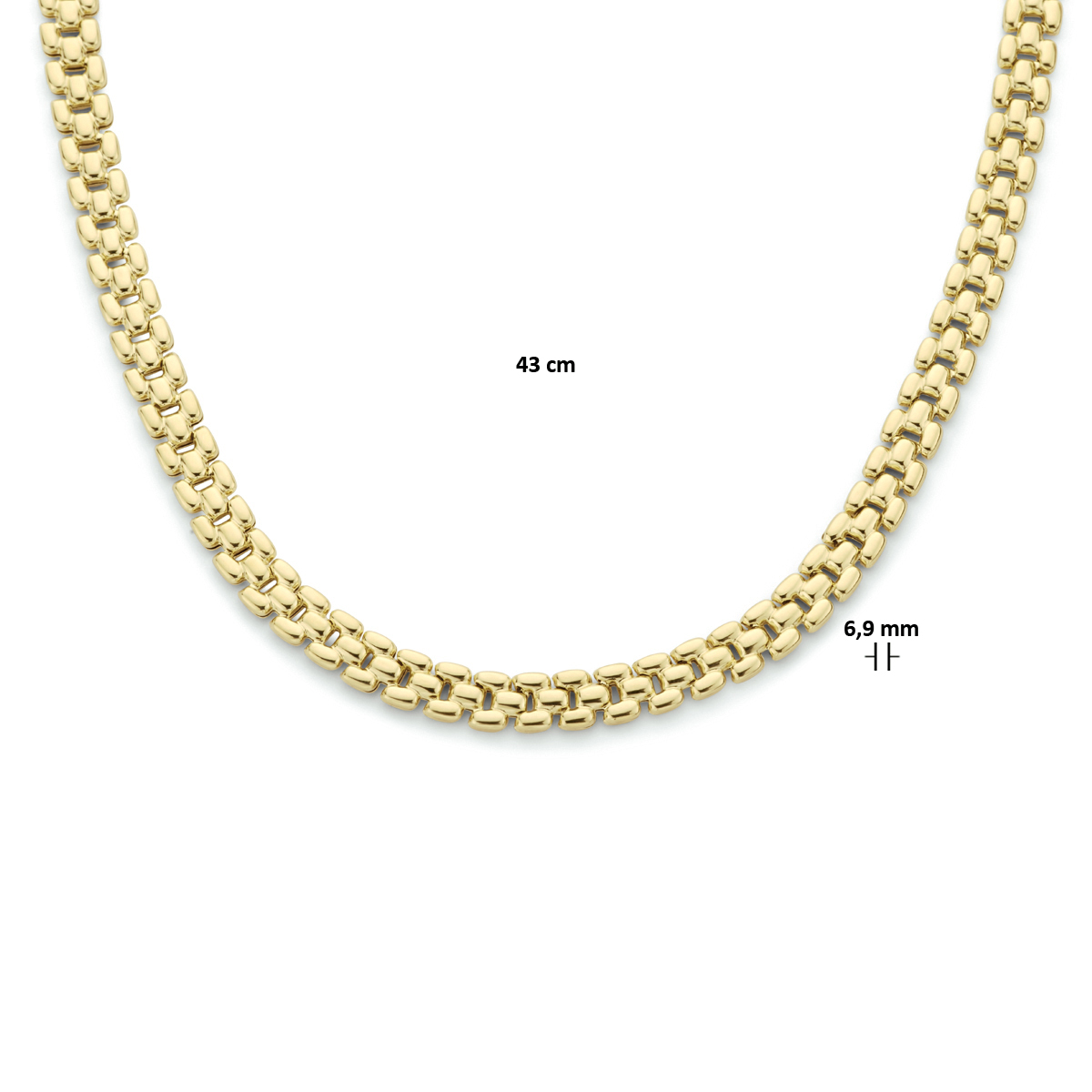 Geelgoud op 925 zilveren panter collier met een breedte van 6.9mm. Het collier heeft een draaglengte van 43cm. Geen garantie op plating.