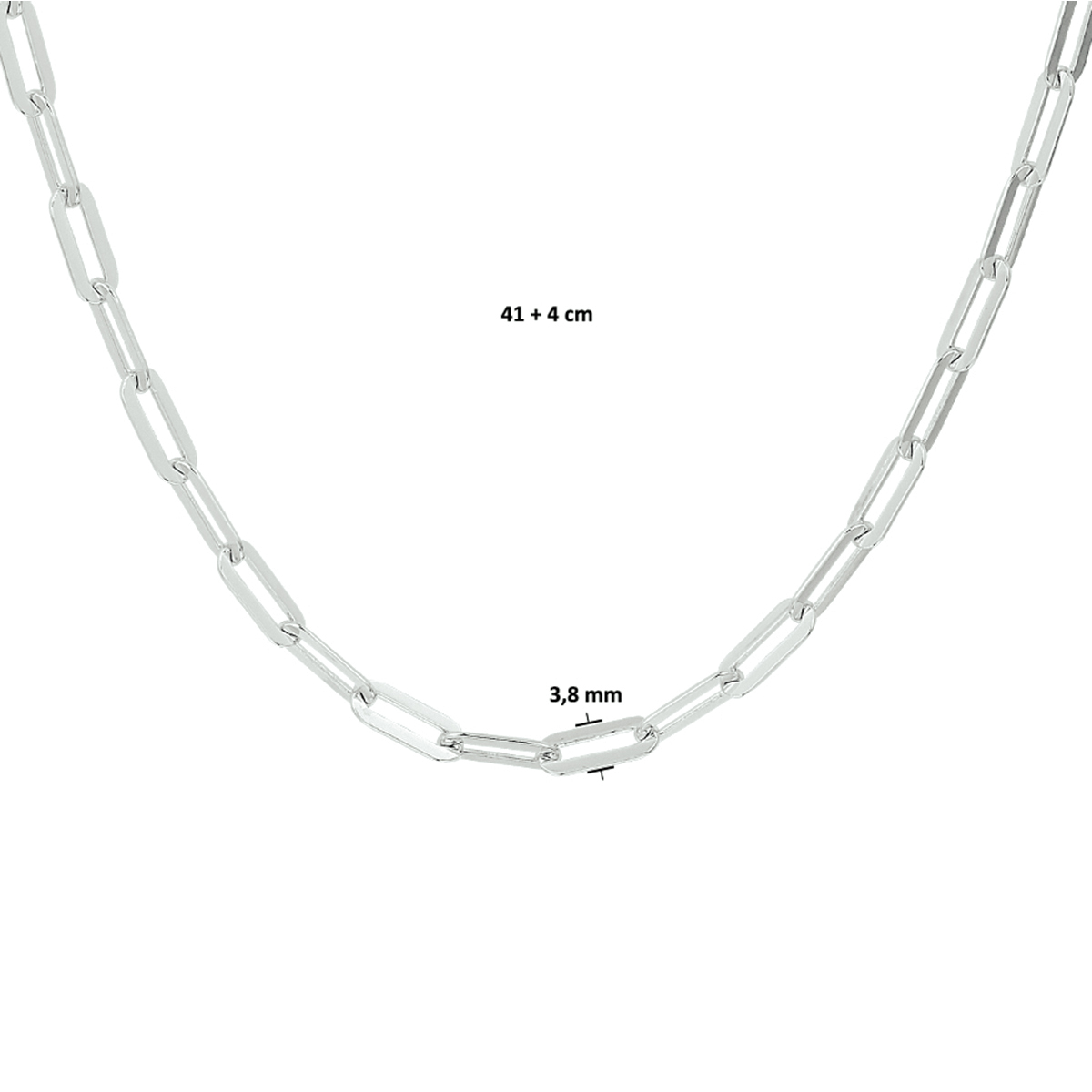 Gerhodineerd 925 zilveren collier uitgevoerd met een stevige karabijn sluiting. Het collier heeft een draaglengte van 41cm met een extensie van 4cm en een schakelbreedte van 3.8mm.
