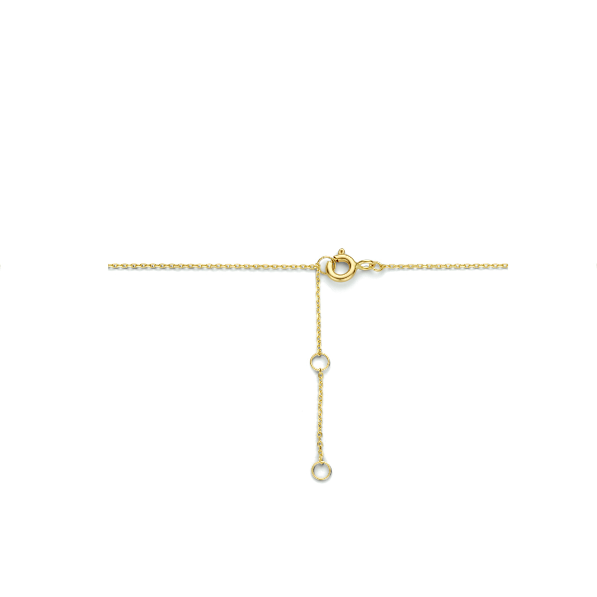 14k Geelgouden collier uitgevoerd met twee rondjes met een diameter van 7.5mm. Het collier heeft draaglengtes van 40, 42 en 44cm.