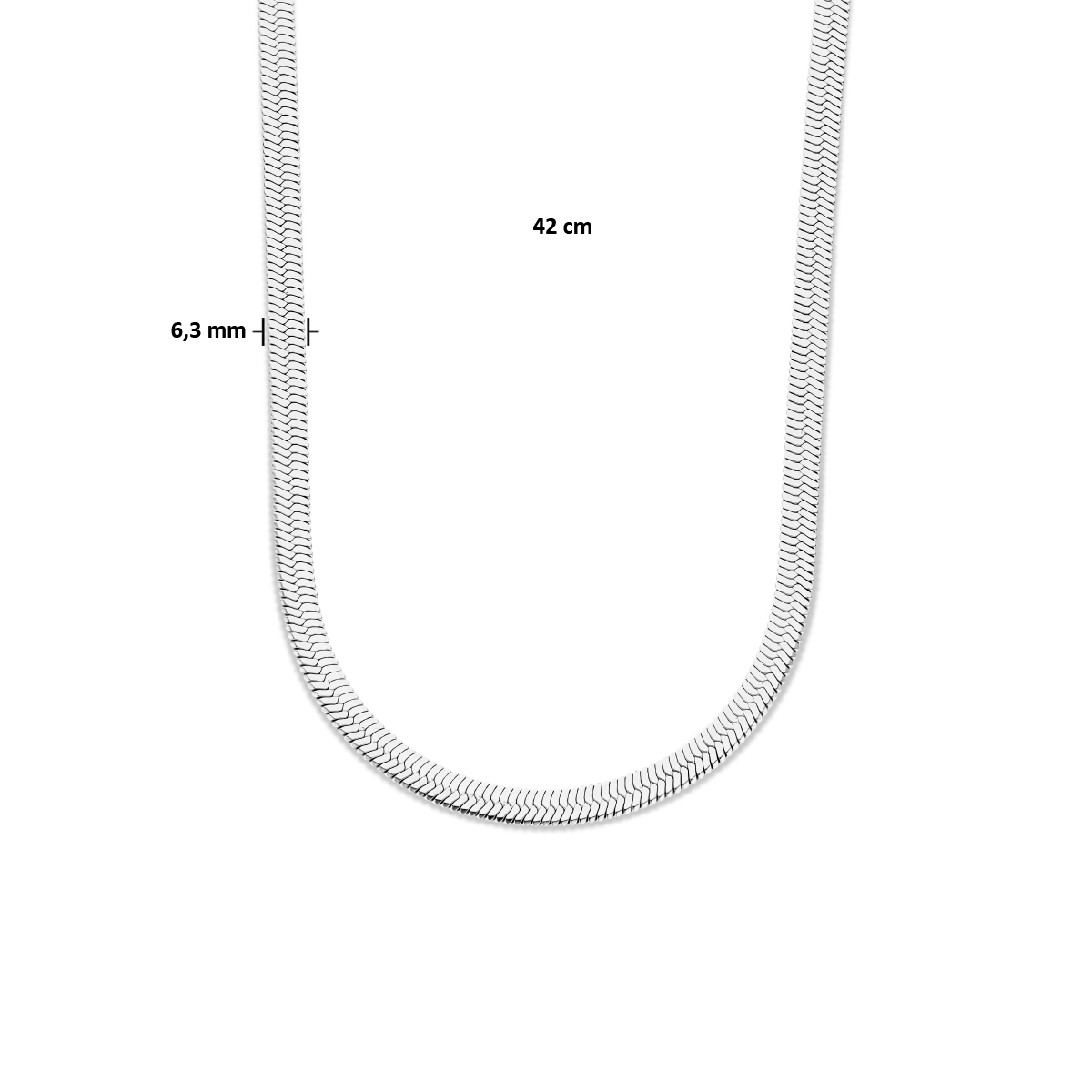 Stalen omega collier uitgevoerd met een karabijn sluiting. Het collier heeft een draaglengte van 42cm.
