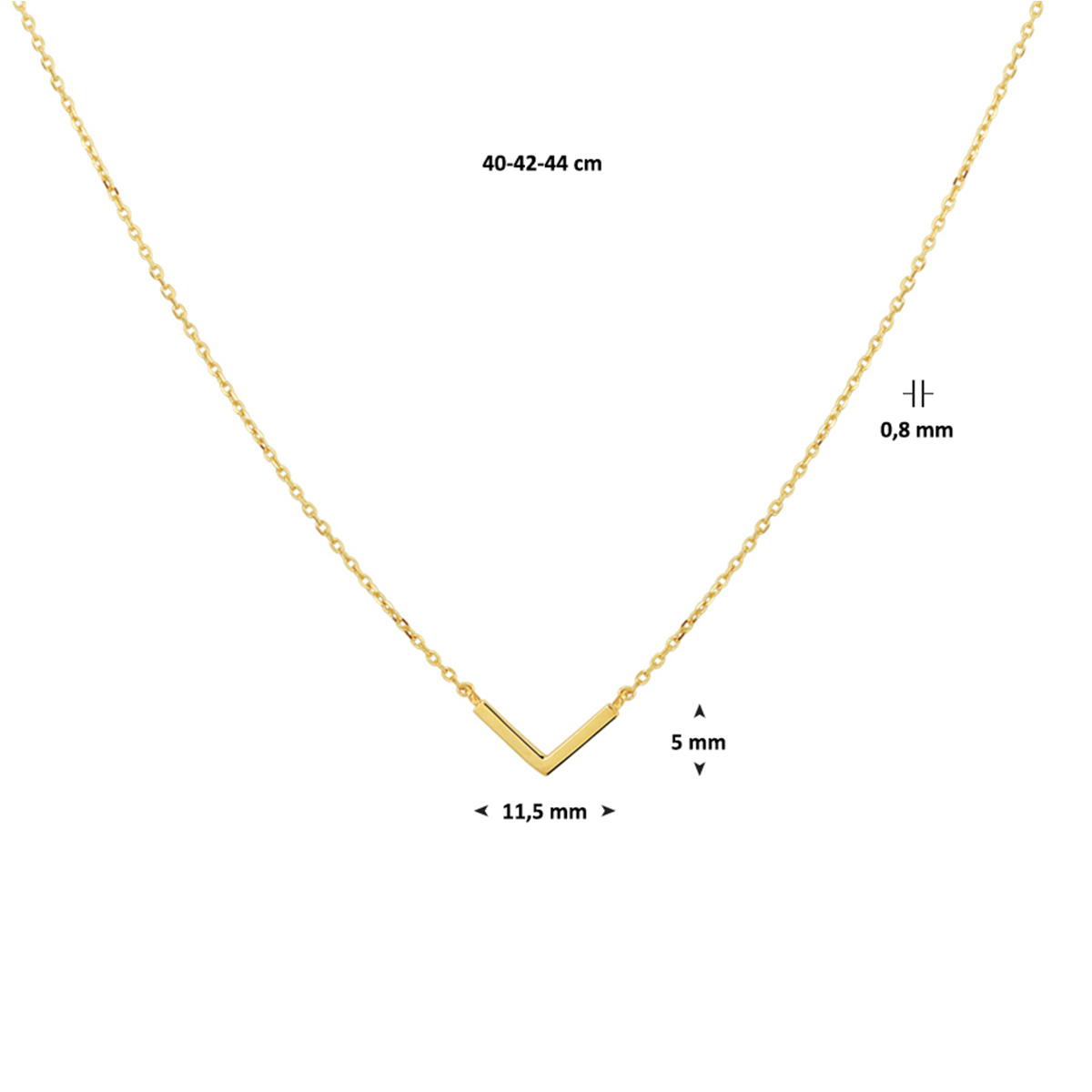 Beschrijving: Geelgouden collier met draaglengtes van 40-42-44 cm en de schakelbreedte is 0.8mm.
