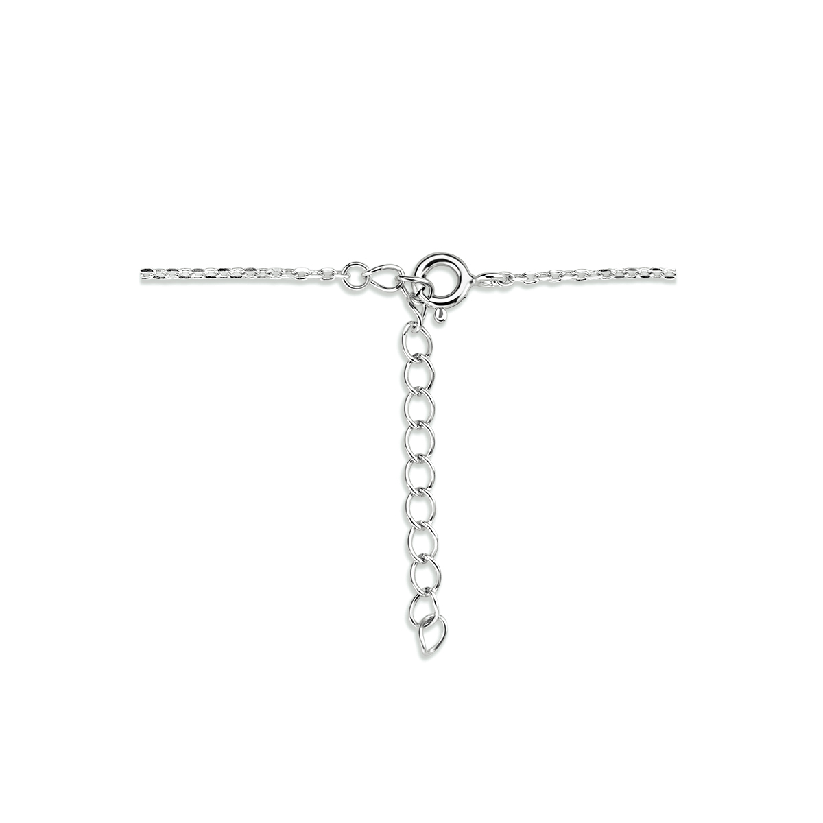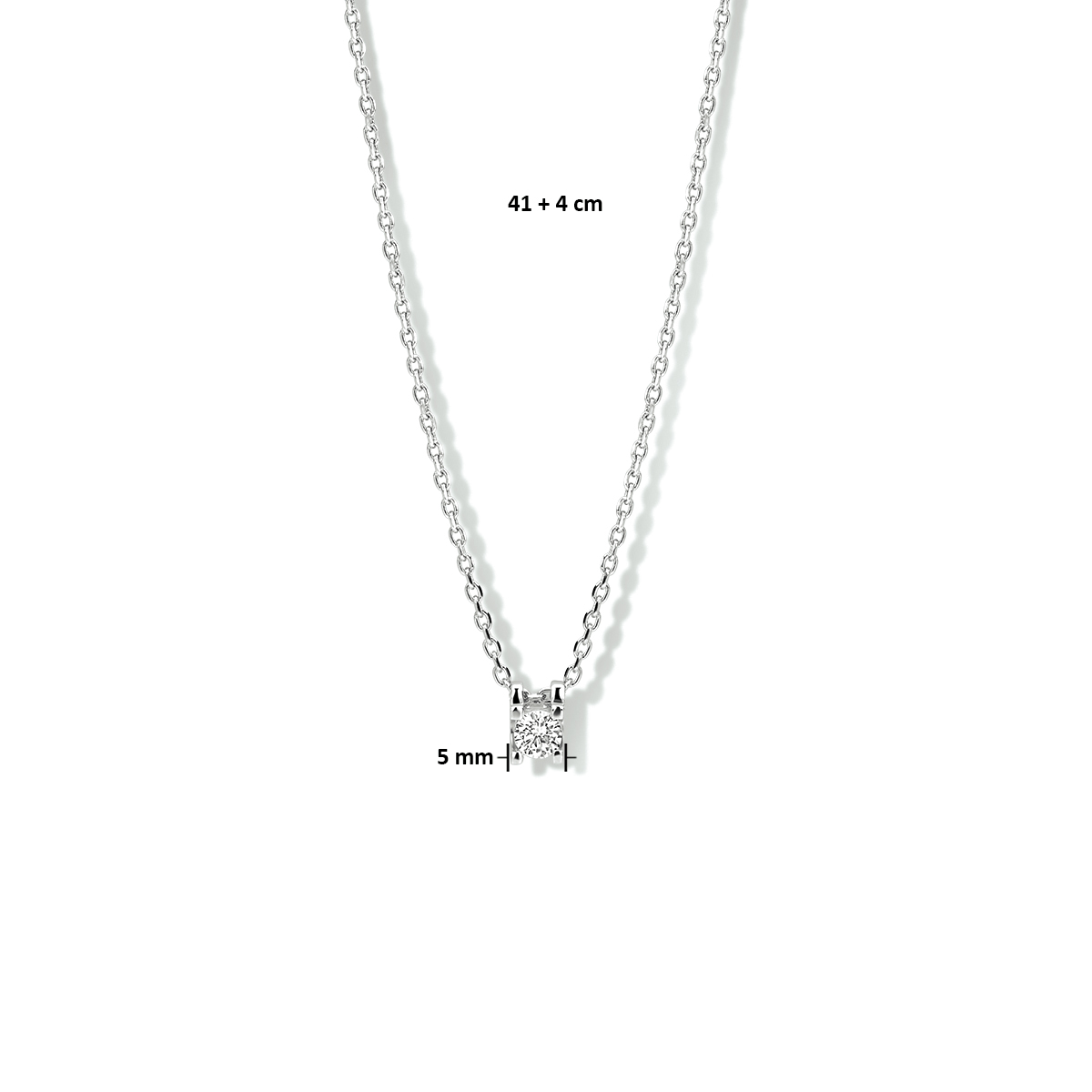 Beschrijving: Gerhodineerd zilveren collier met zirkonia. De lengte van het collier bedraagt 41cm met 4cm extensie.