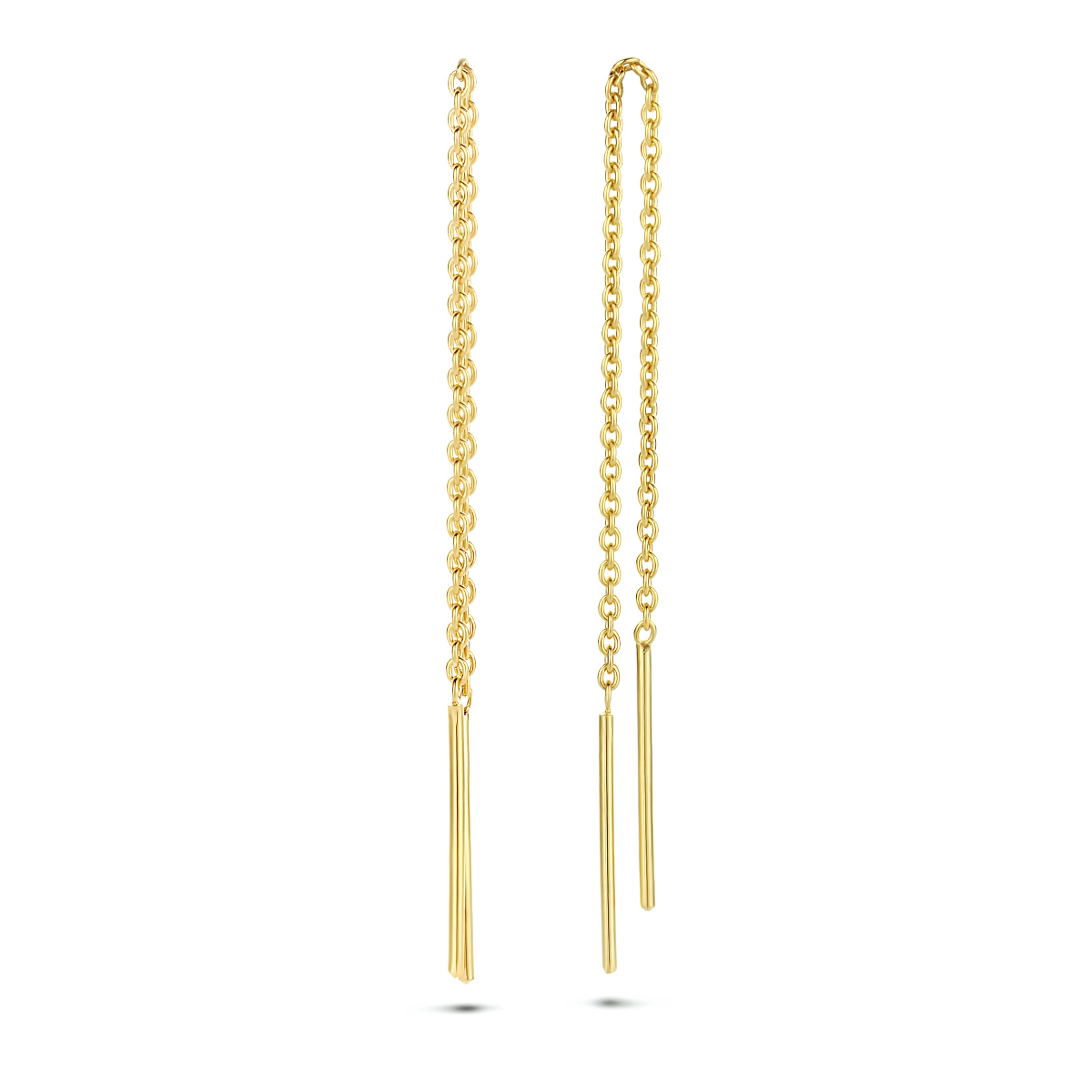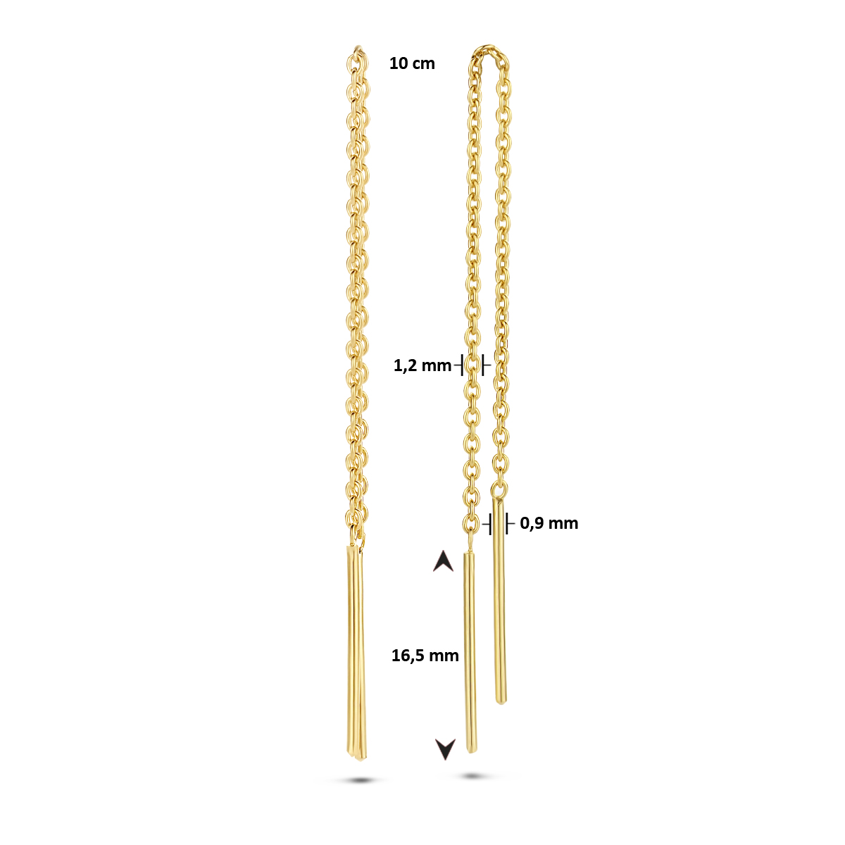 Verguld op 925 zilveren doortrekoorbellen uitgevoerd met een balkje van 16.5x0.9mm. Geen garantie op plating.