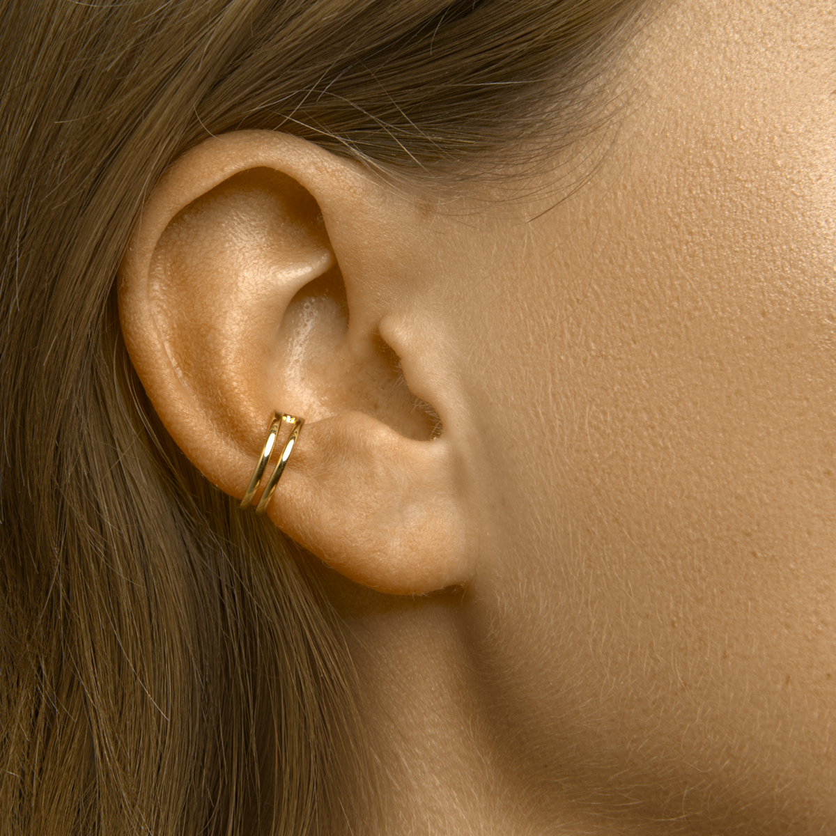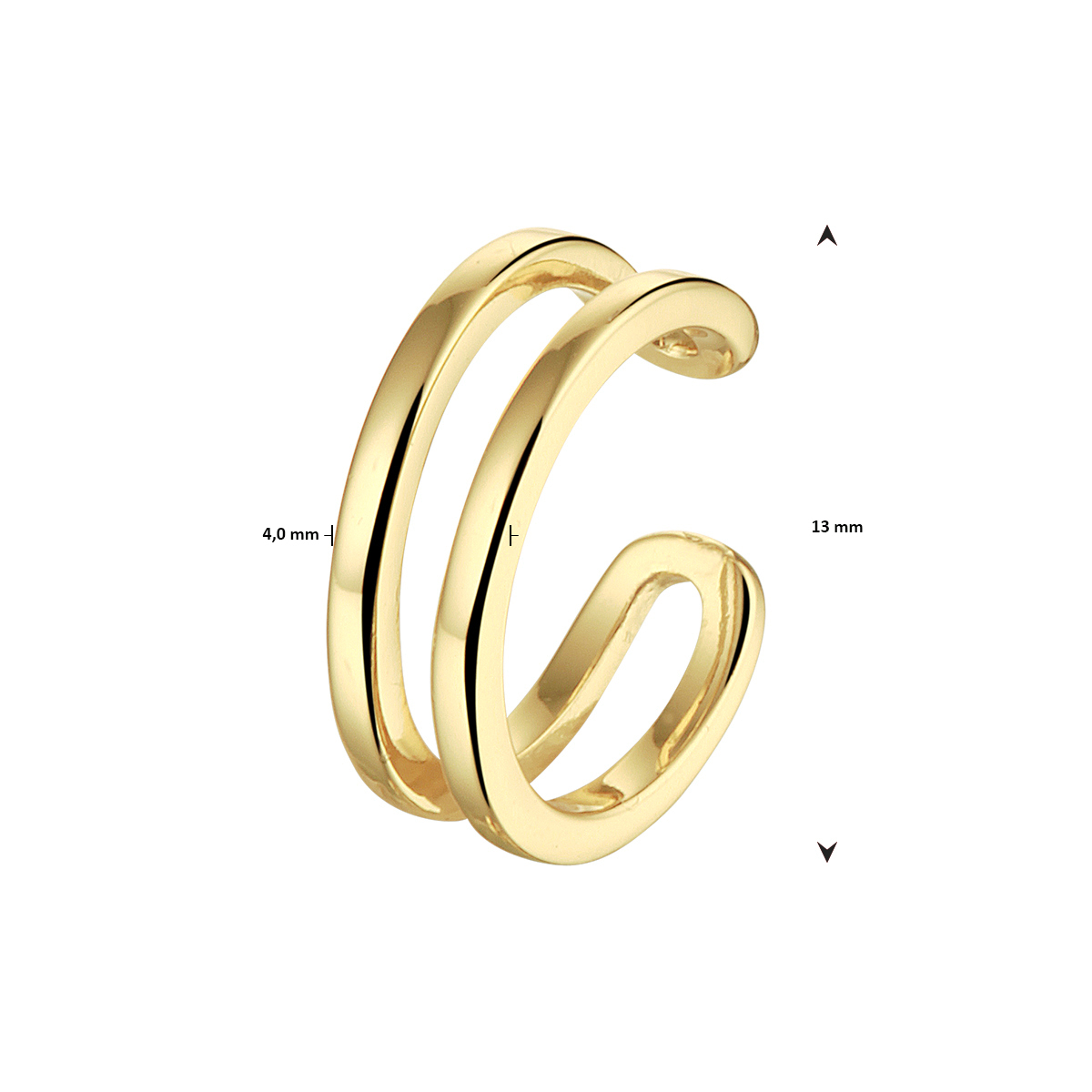 Geelgoud op 925 zilveren earcuff. De earcuff heeft een afmeting van 13x4mm en wordt per stuk verkocht. Geen garantie op plating.