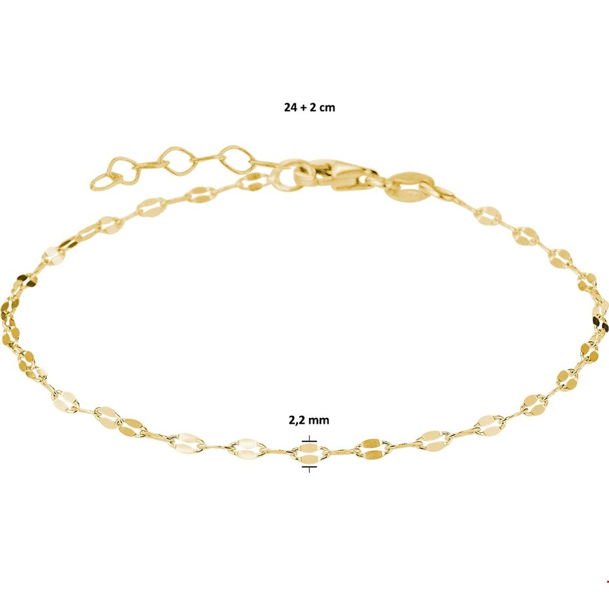 Beschrijving: Geelgoud op zilveren enkelbandje uitgevoerd met een stevige karabijn sluiting. Het enkelbandje heeft een schakelbreedte van 2.2mm en een draaglengte van 24cm met een extensie van 2cm. Door het simplistische design gemakkelijk te combineren met andere sieraden.