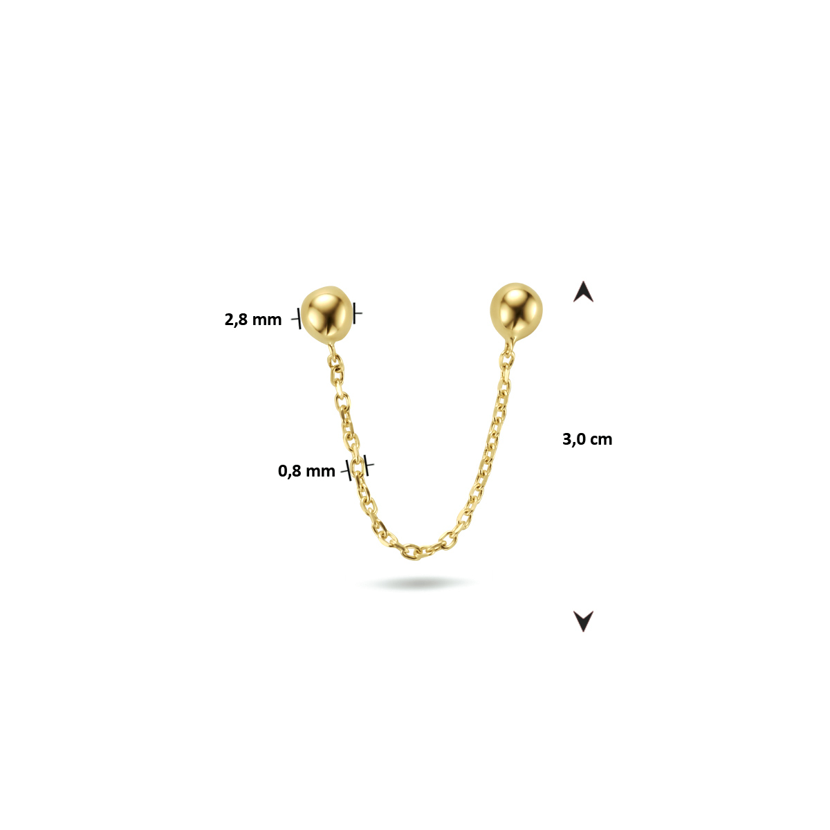 14k Geelgouden oorknop geschikt voor meerdere gaatjes met een totale lengte van 3cm en een schakelbreedte van 0.8mm. De oorknop wordt per stuk verkocht.