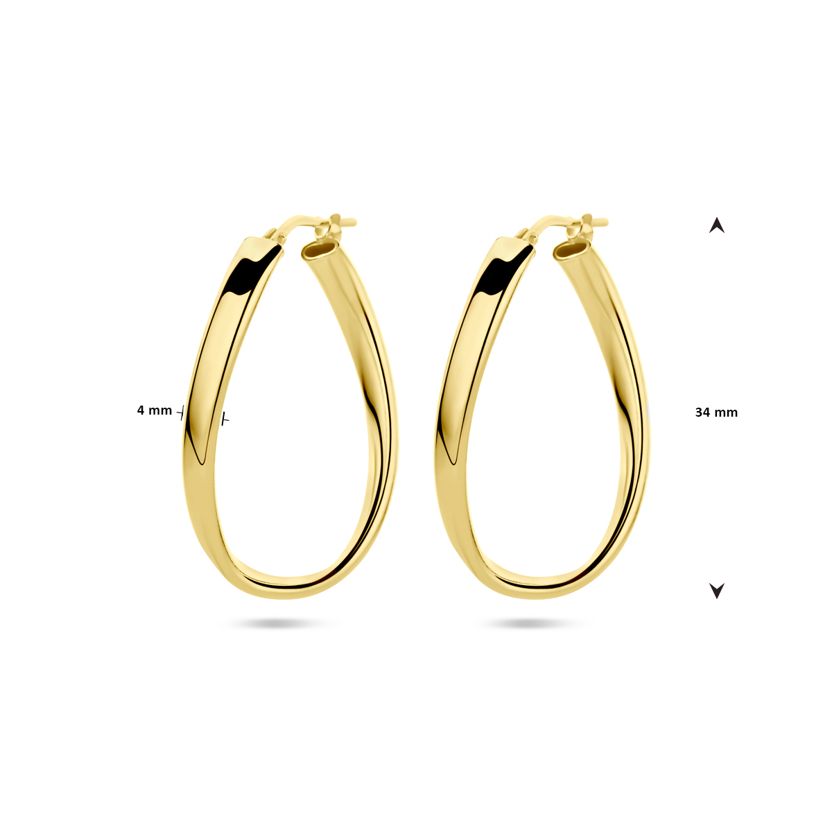 Verguld op 925 zilveren oorringen met een afmeting van 34x4mm. Geen garantie op de plating.