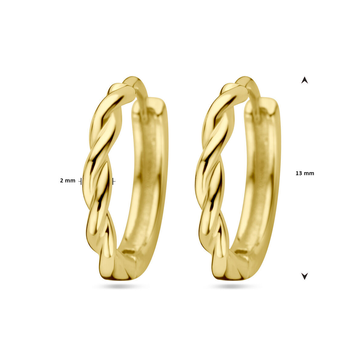 Verguld op 925 zilveren klapoorringen met een afmeting van 13x2.0mm. Geen garantie op de plating.