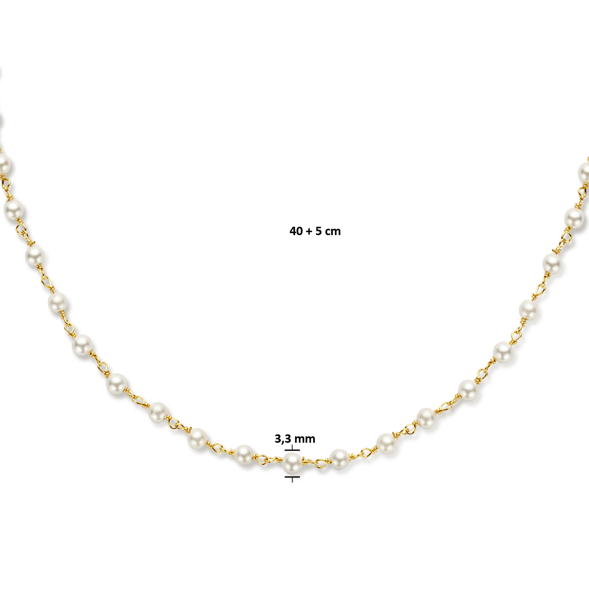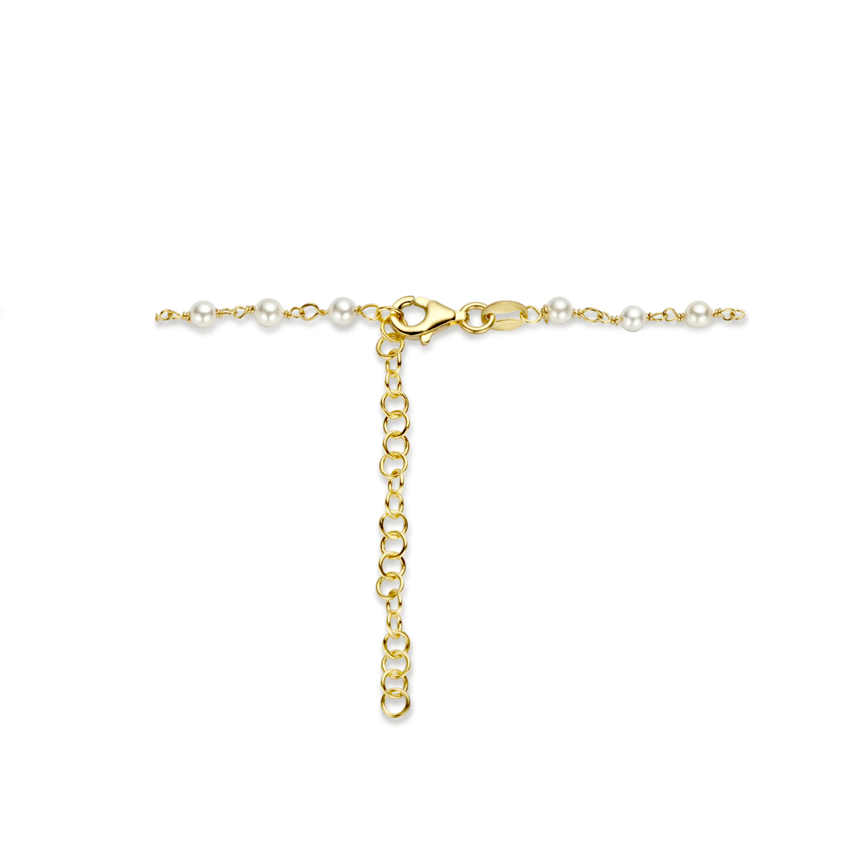 Verguld op 925 zilveren collier met synth. parels. Het collier heeft een draaglengte van 40cm en een extensie van 5cm. Uitgevoerd met een karabijn sluiting. Geen garantie op plating.