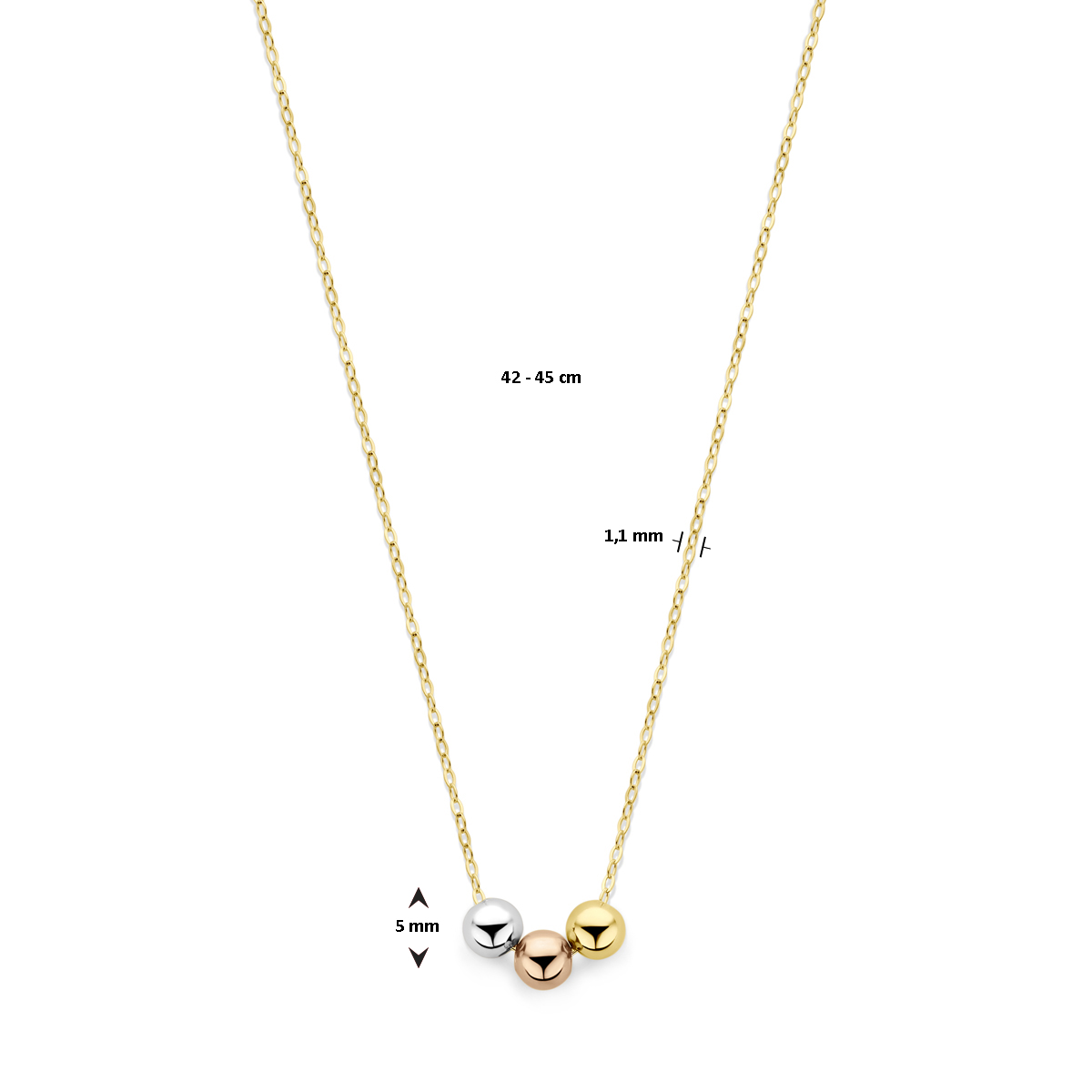 collier tricolor bolletjes 42 - 45 cm 14K tricolor goud