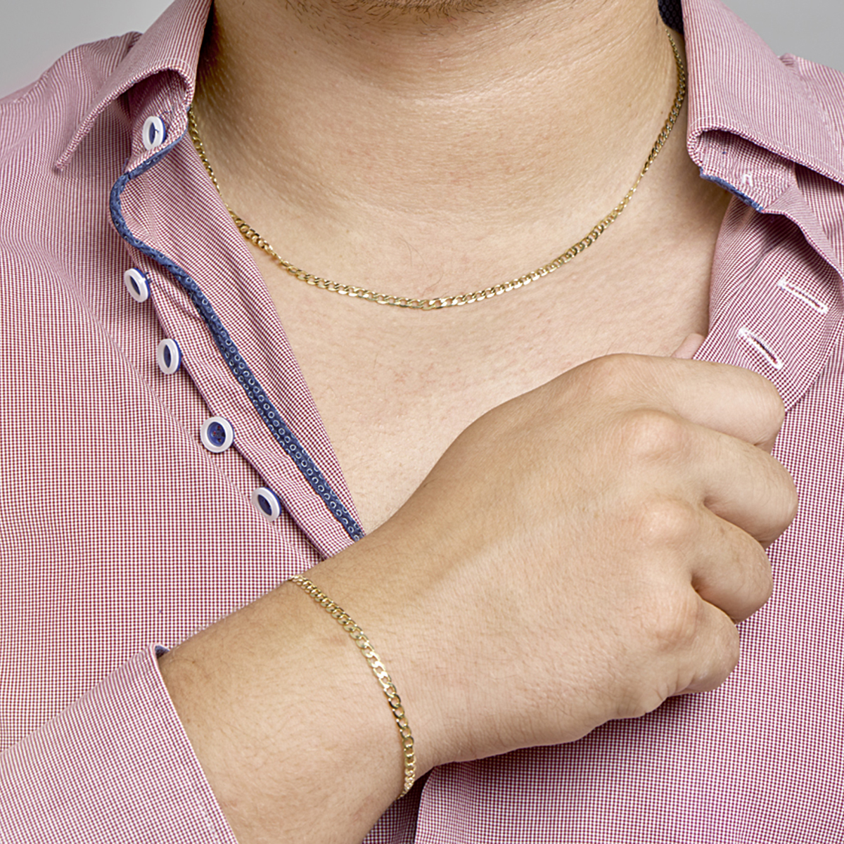 14k Geelgouden gourmette lengte artikel met een schakelbreedte van 3.3mm.